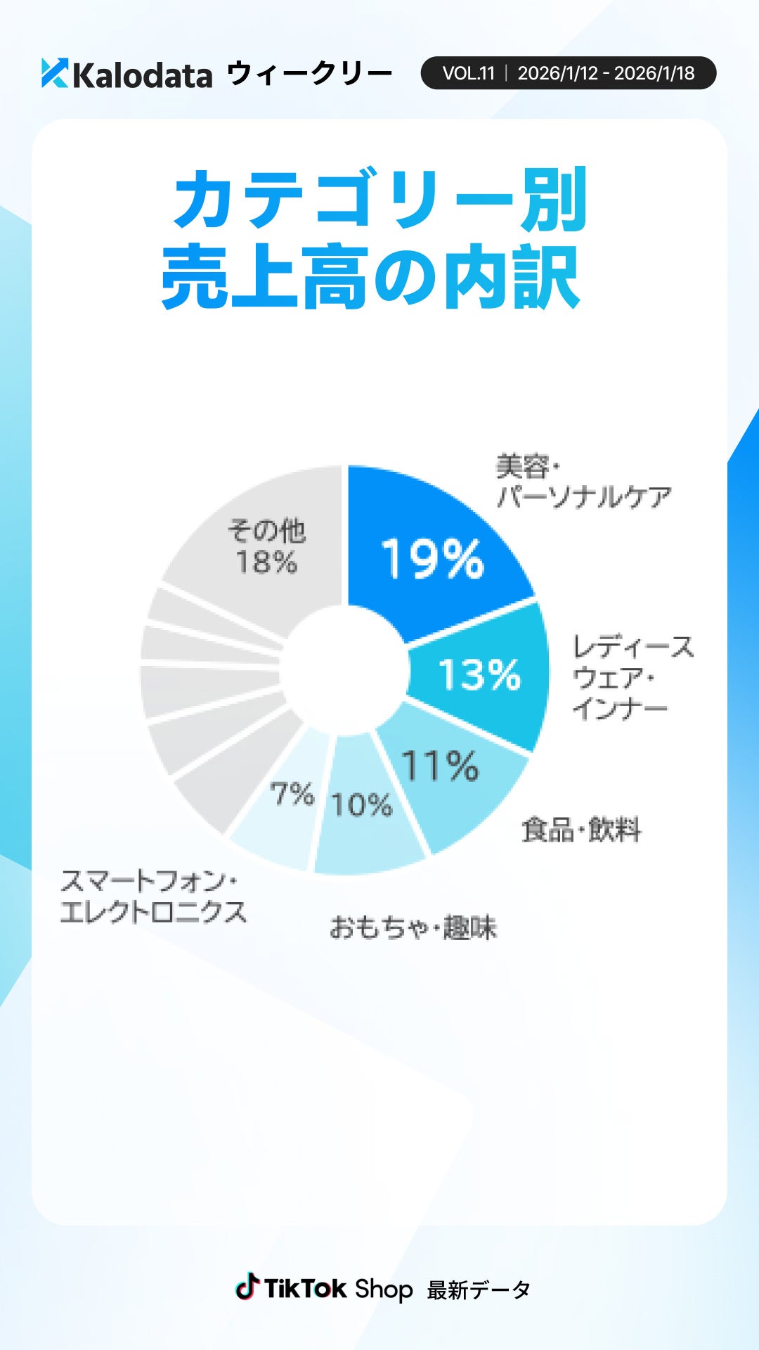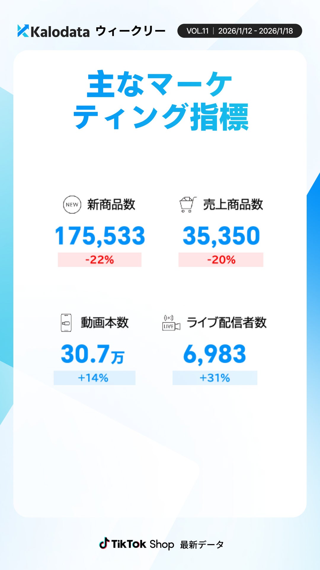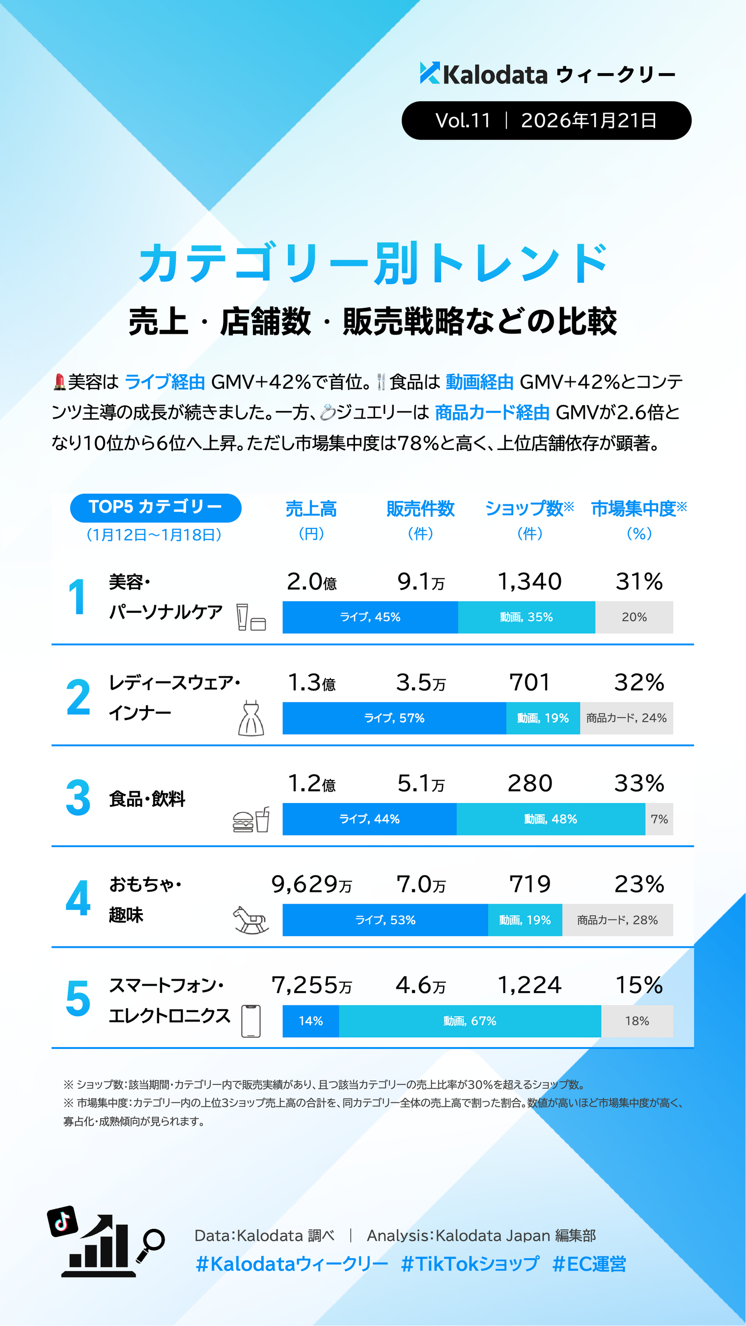 【Kalodataウィークリー】日本TikTok Shop、売上集中が進行 動画・ライブは高水準を維持(2026年1月12日週)