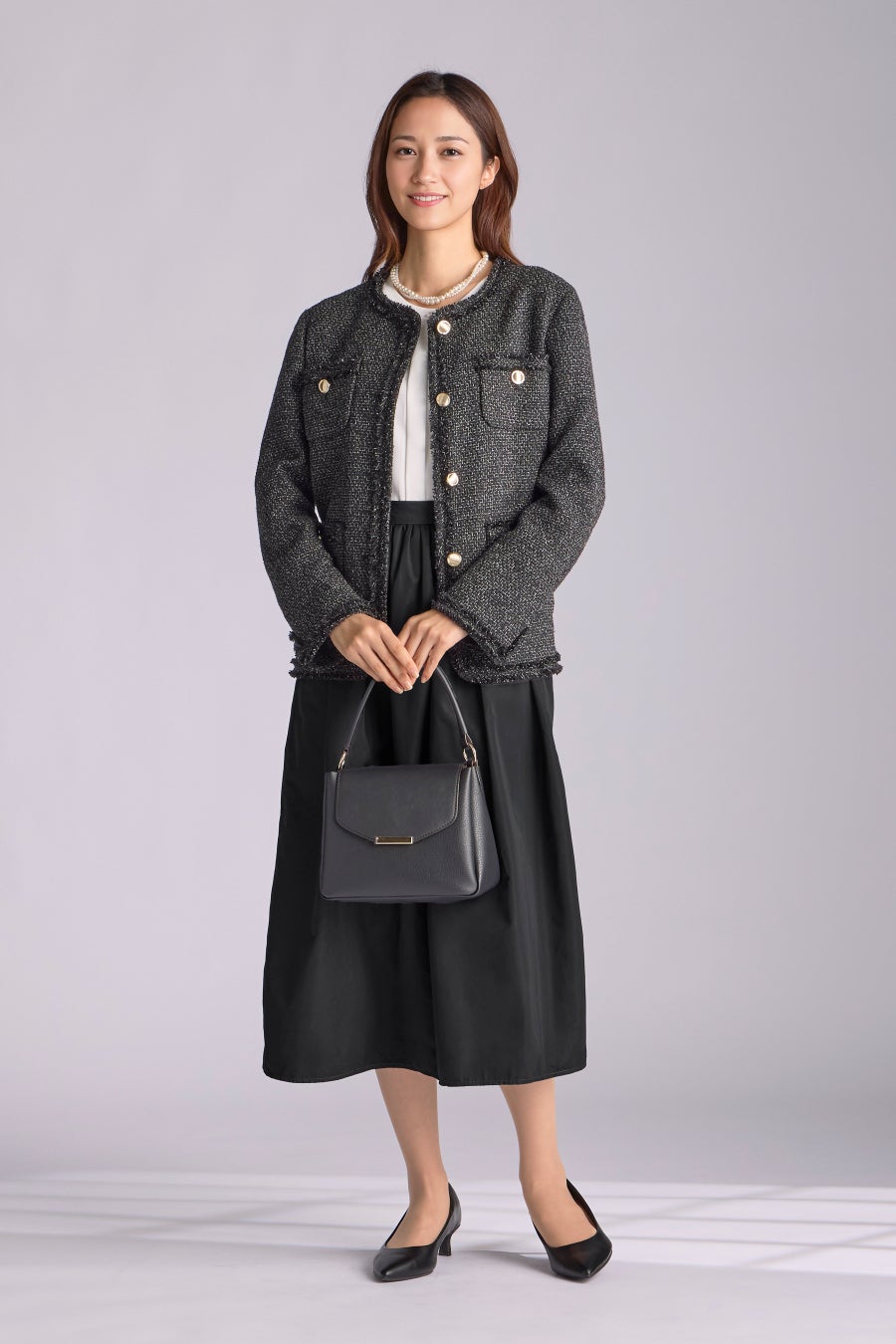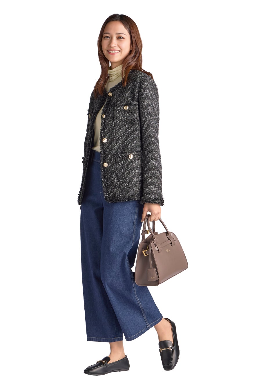 表情豊かなツイード素材が、コーディネートに奥行きをもたらす一着。スカートを合わせれば上品に、デニムを合わせれば程よく力の抜けた今どきスタイルに。セレモニーシーンから休日まで自然に馴染み、幅広いスタイルを楽しめるジャケットです。