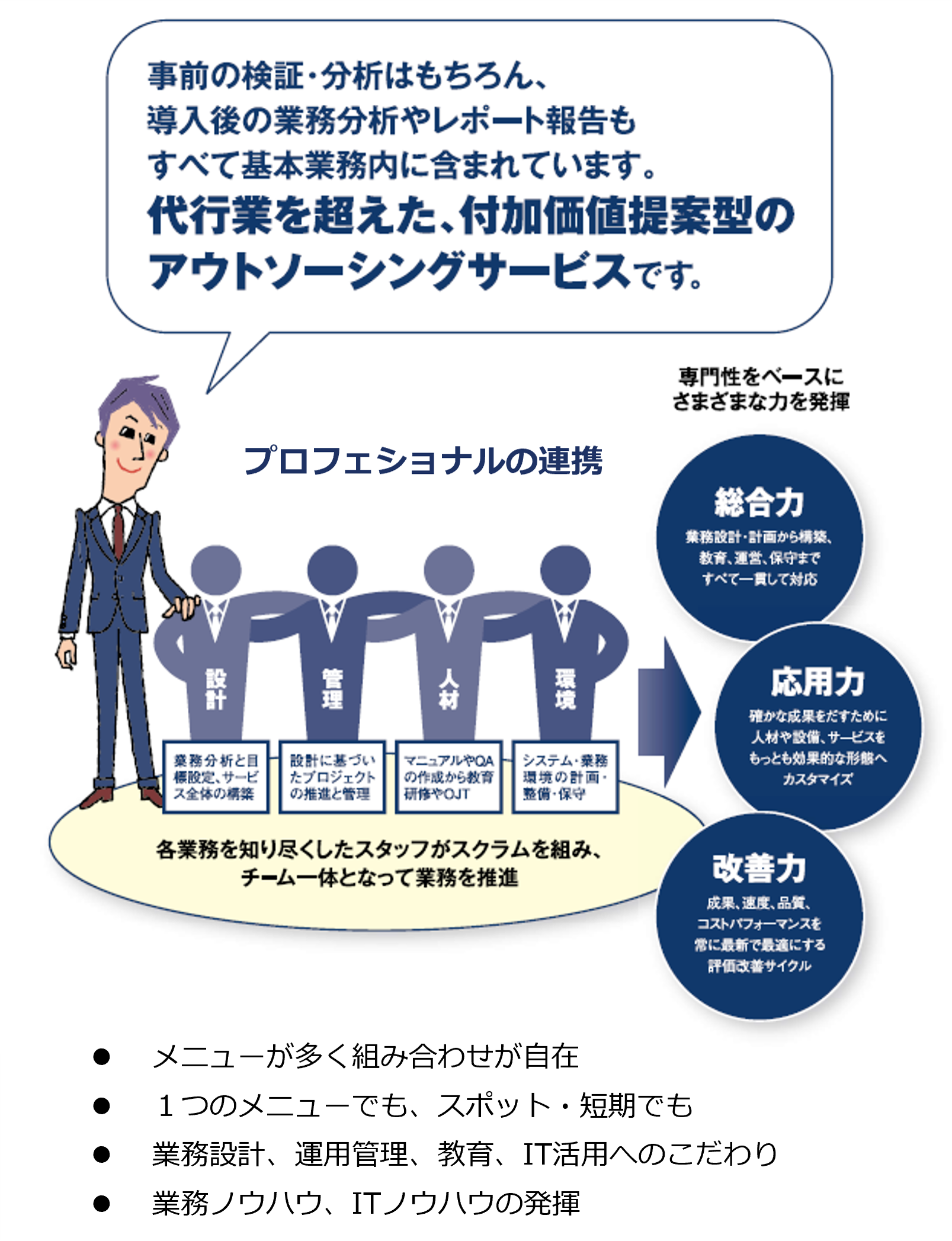 電話応対や定型的な事務処理といったノンコア業務を包括的にアウトソーシングすることで、職員は政策立案や地域課題の分析といったコア業務に資源を集中できます。これにより職員の疲弊を防ぎ、行政サービスの質そのものを高めます。これは、職員の雇用を代替するのではなく、その能力を最大限に引き出す「能力拡張」の考え方に基づくものです。