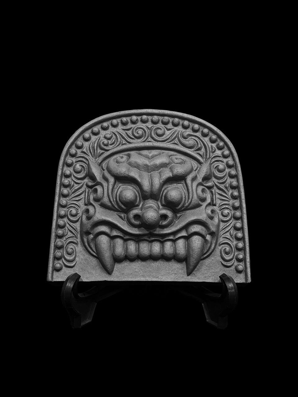 屋根瓦の鬼面を、室内でも楽しめる壁掛け作品として制作。