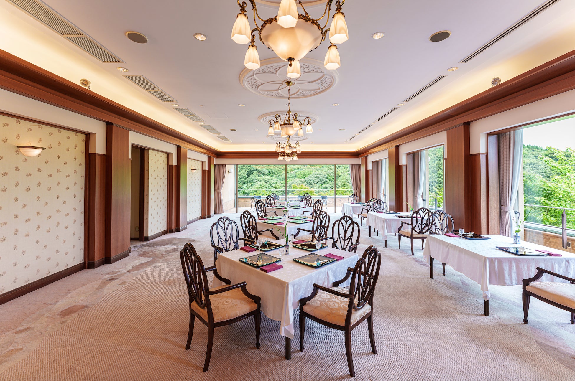 プライベートな空間でゆっくりと味わう「客室でのご会食」と、初冬の雲仙岳の山々を眺めながらお食事をお楽しみいただける「レストランでのご会食」から選択可能となります。