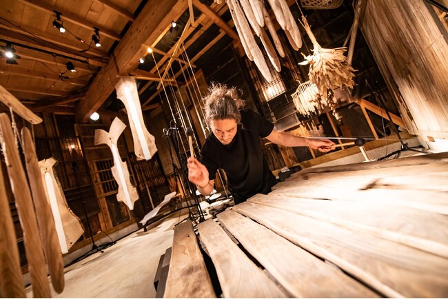 前回の八王子芸術祭の対象地域:高尾・恩方地域で伐採された木材等で製作した楽器や、今回の開催地域のテーマ:絹糸・鉄・廃材などを用い、八王子の音を生み出し、奏でます。