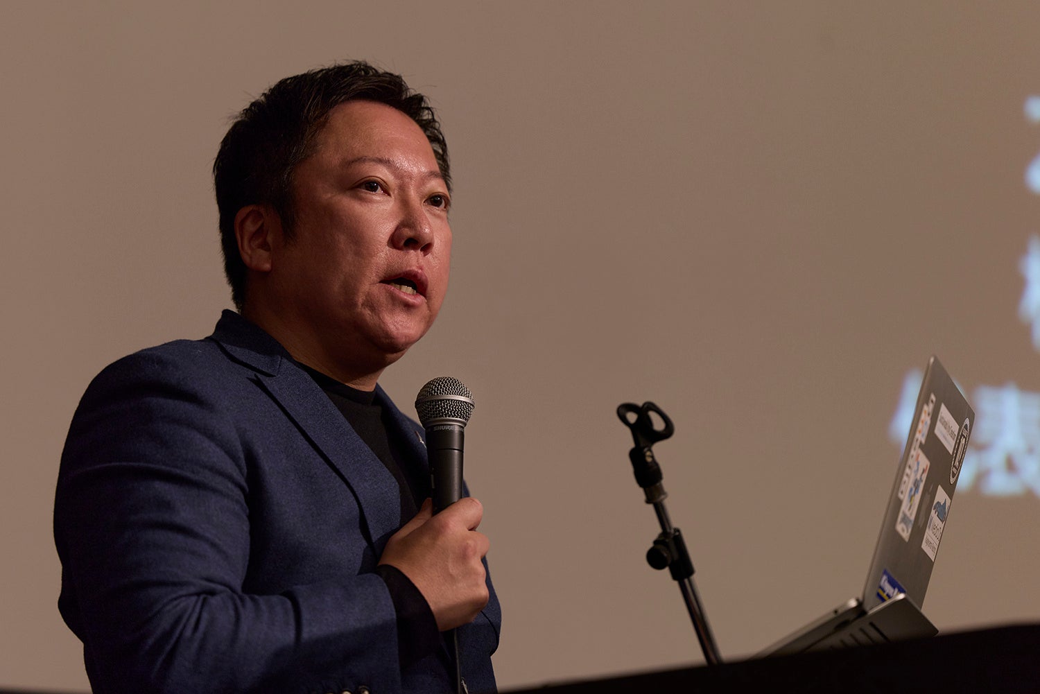 次に、株式会社メディアドゥ代表取締役社長CEO 藤田恭嗣氏による「地方大学における起業家の活用」と題した基調講演が行われました。徳島県旧木頭村出身である藤田氏は、大学3年生(当時20歳)で起業して以来の経験を踏まえ、研究成果を社会に結びつけるプロセスや地域展開の意義について語りました。また、「地方大学には①基礎研究と②応用研究、③社会実装力に加えて④リスクテイカーの育成が必要」との提言があり、「オール徳島」で地方創生に取り組む覚悟と方向性が共有され、本学の今後に大きな期待が寄せられました。