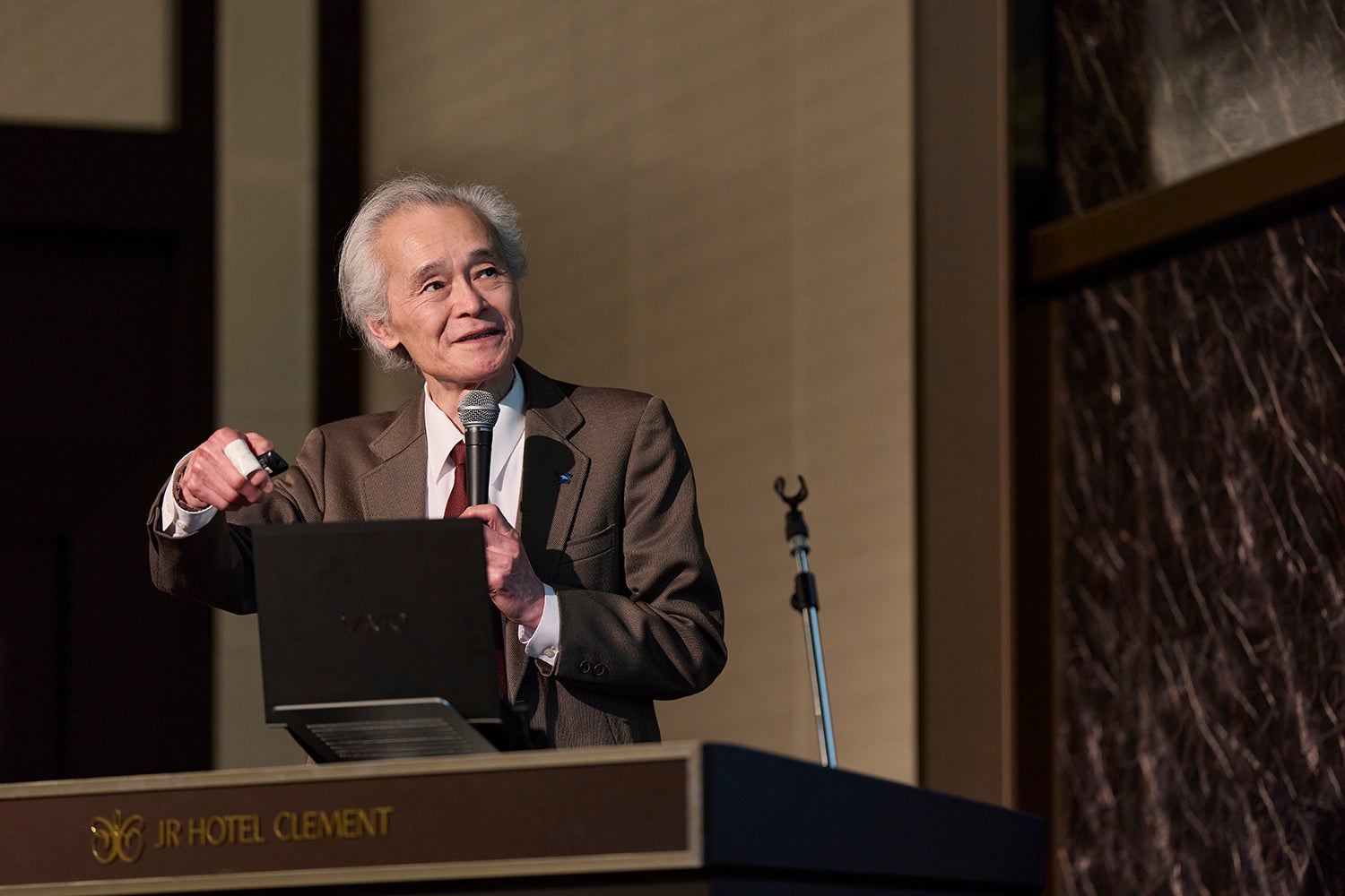 本学先端酵素学研究所教授で株式会社セツロテック代表取締役会長の竹本龍也氏からは、「イノベーションは新結合から生まれる:研究成果を産業創出・スタートアップへ」と題し、研究成果と産学連携・社会実装による「新結合」を通じて事業化した徳島大学発スタートアップ「セツロテック」社の実例が紹介されました。