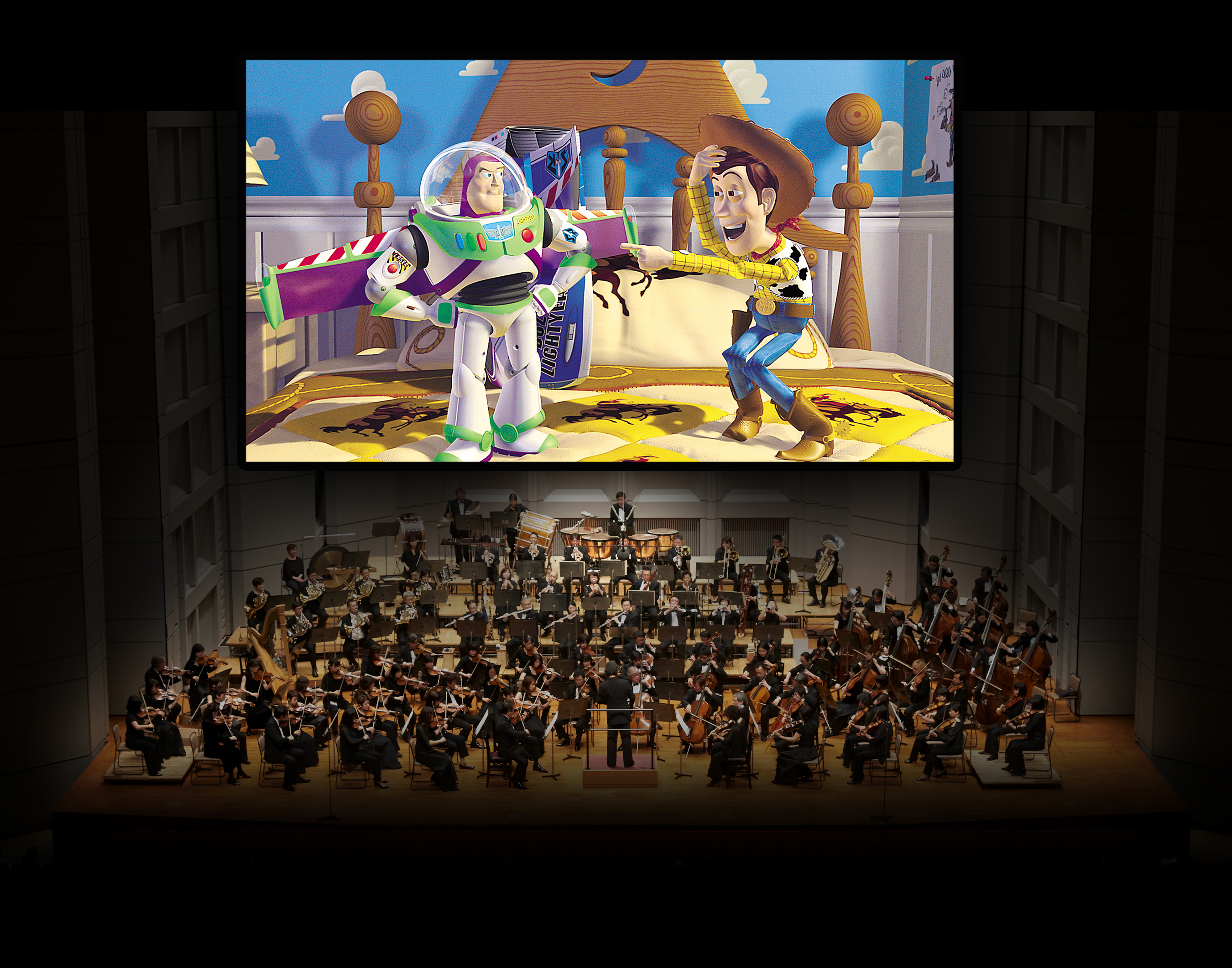 本公演では、映画のセリフや効果音はそのまま、劇中音楽のみをオーケストラがリアルタイムで演奏。 映像と生演奏が完全にシンクロすることで、ウッディやバズたちの冒険が、より鮮やかで臨場感あふれる“体験”として甦ります。 映画館でもコンサートホールでも味わえない、唯一無二の上映スタイルです。ファミリー層はもちろん、1995年の公開から30年を超えて、長年シリーズを愛してきたファンにとっても、 心を揺さぶる特別な音楽体験をお届けします。