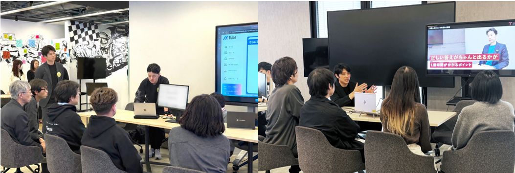 同日開催された「AI活用展示会」では、生成AIを活用した業務改善の取り組みを、デモ画面や資料を用いて紹介するブース展示を実施しました。社員がより生成AIを身近に感じられるよう、生成AIの使い方から部内での業務改善事例などが共有され、参加者が積極的に質問する姿が印象的でした。また本年は、AI活用に関する情報交換の場として、業務時間後に交流会を実施。業務時間中に参加が難しい社員も展示をみられるよう工夫しました。参加者からは、「他部署の取り組みを具体的に知ることができた」、「自部署でもすぐに試せそうなヒントが得られた」といった声が寄せられ、生成AI活用の裾野を広げる場となりました。