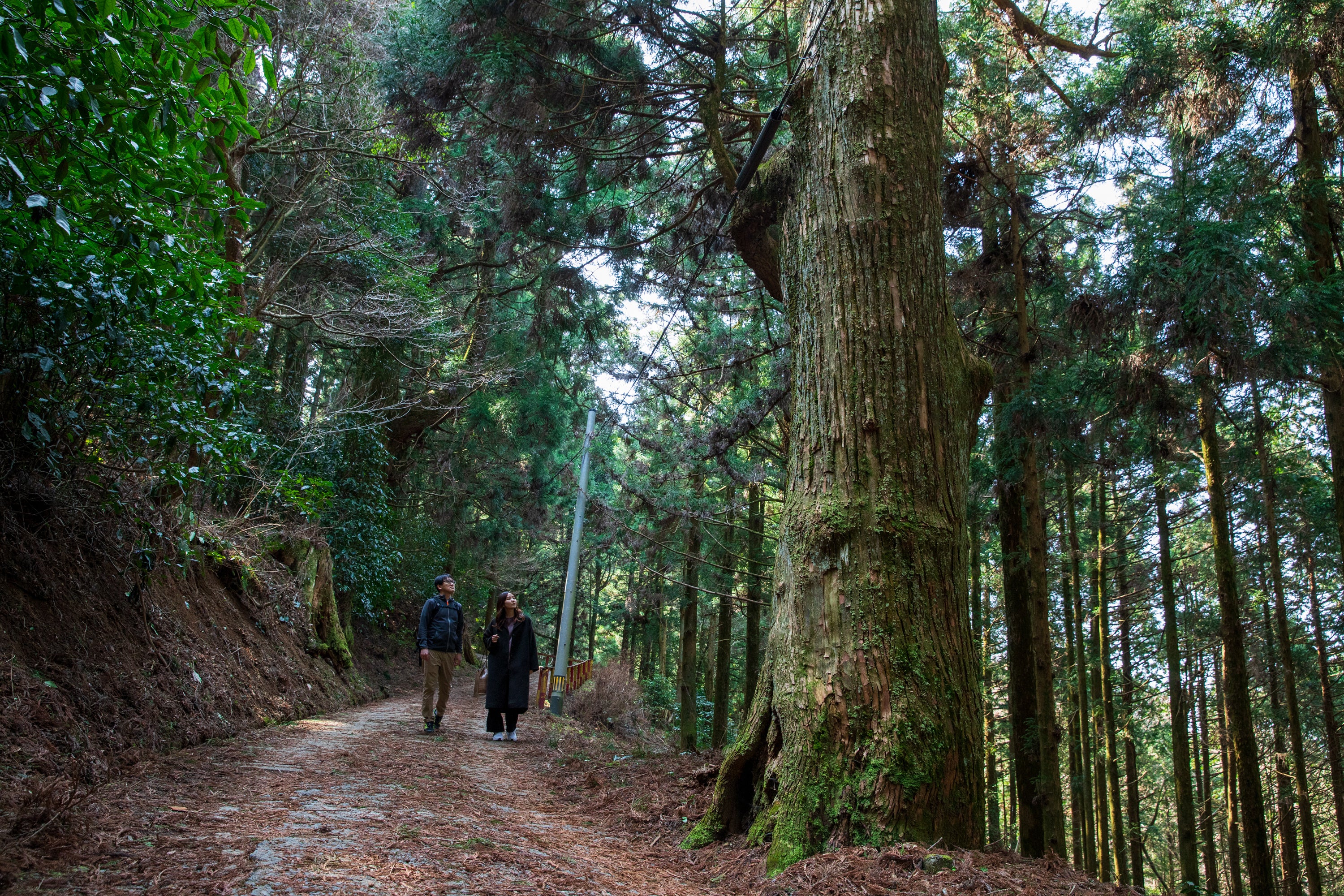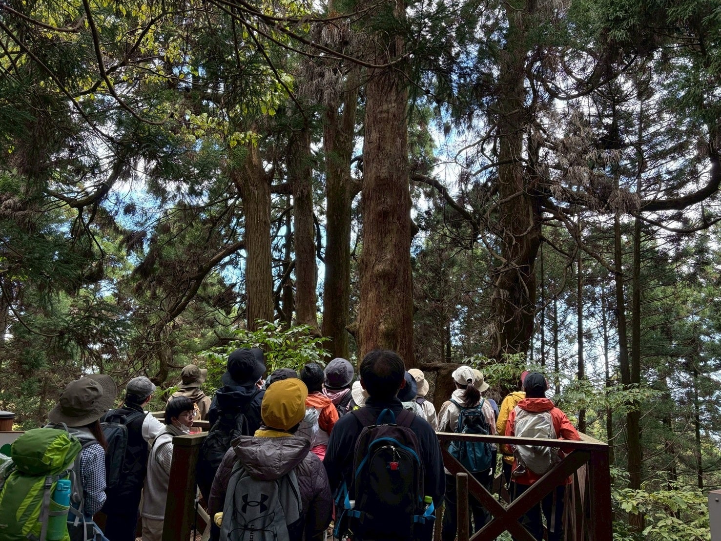 コースの近くには、幹回り約16m・高さ約40mの巨木「大和の大杉」もあり、若杉山の森が育んできた雄大な自然を間近に体感できます。