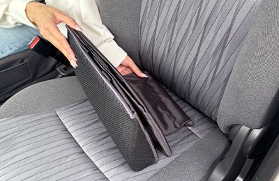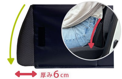 折りたためば厚さ約6cmのクッションに変身。座席や腰をサポートするランバークッションとして使え、長時間ドライブの疲労を軽減します。