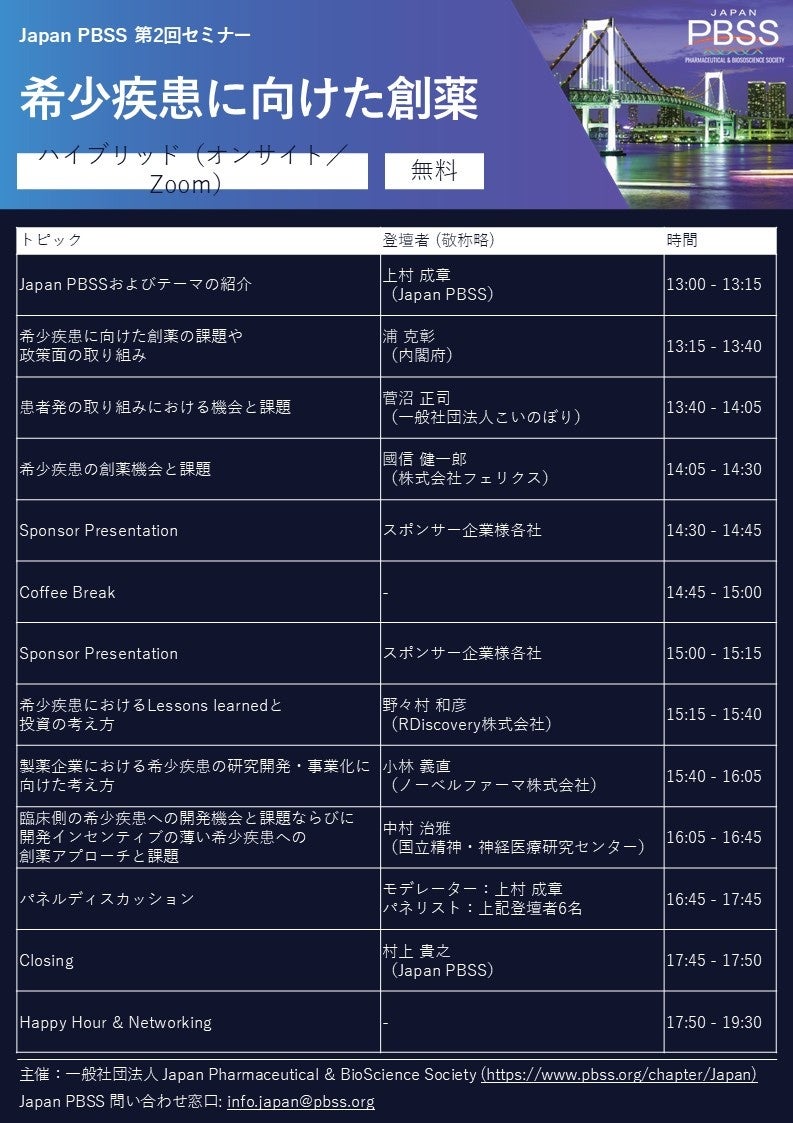 【更新】Japan PBSS 第2回イベント「希少疾患に向けた創薬」開催のお知らせ