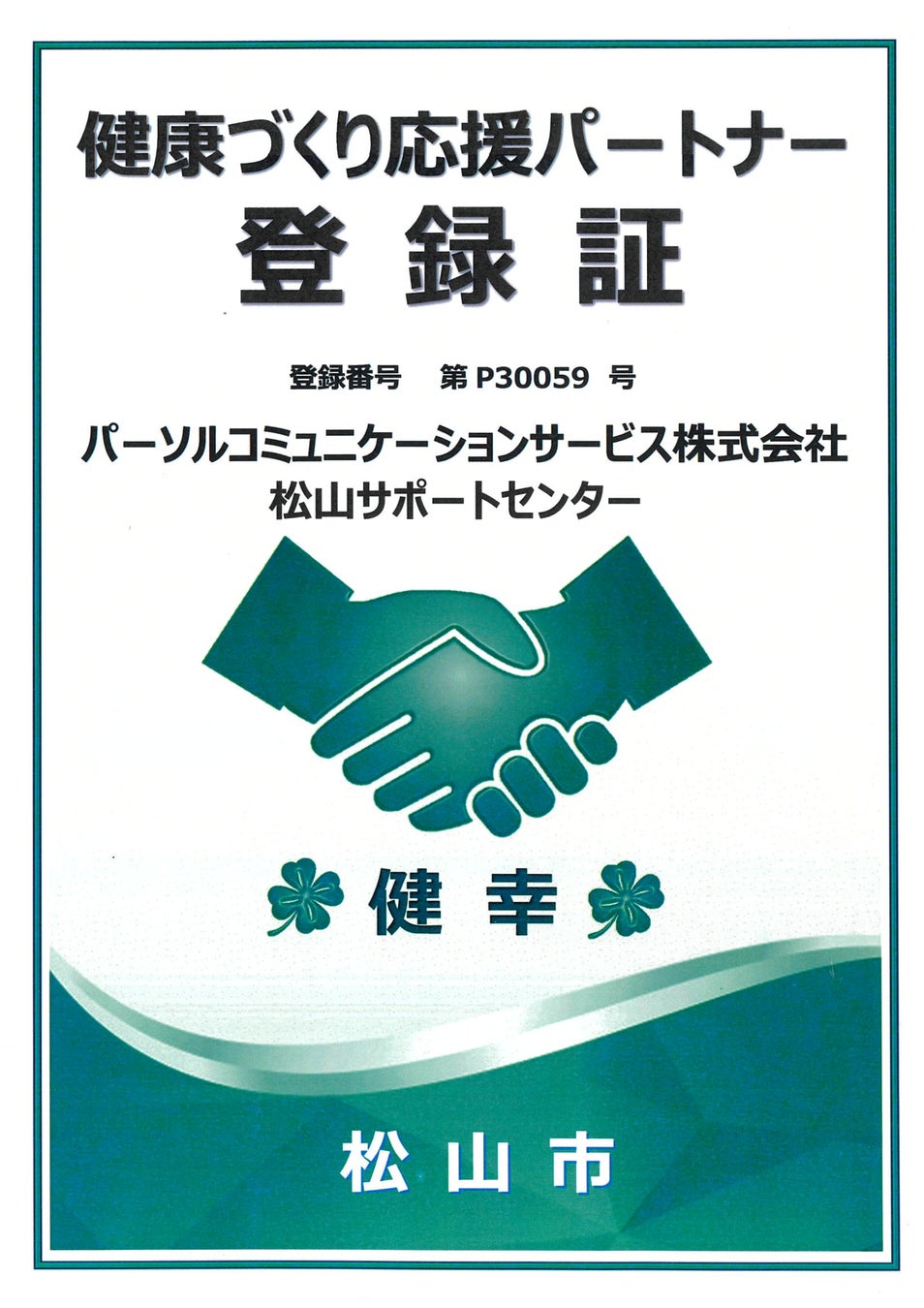 パーソルコミュニケーションサービス、「松山市健康づくり応援パートナー」優秀賞を受賞