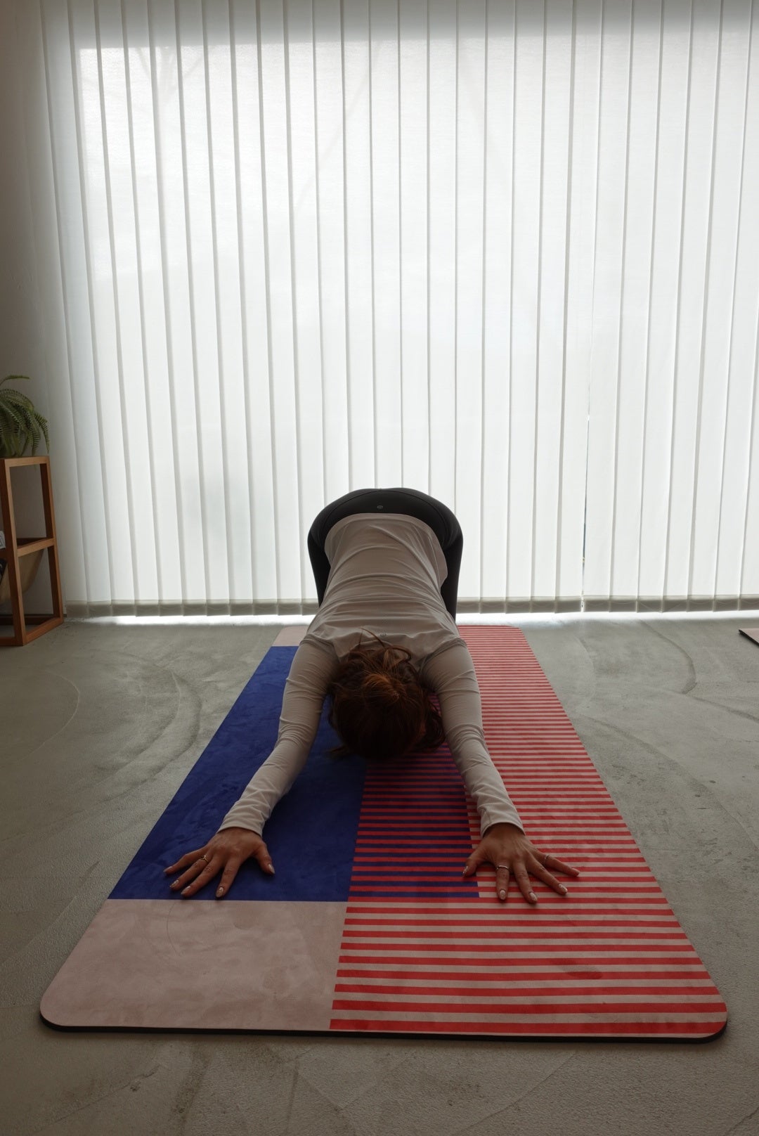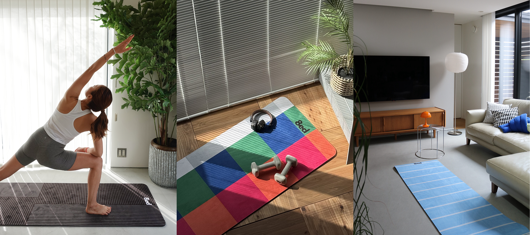 ワイドサイズになることで、ストレッチや軽い運動だけでなく、床に座る・寝転ぶといった日常の動作とも自然につながり、空間の一部として敷いたまま使える感覚がより強まりました。