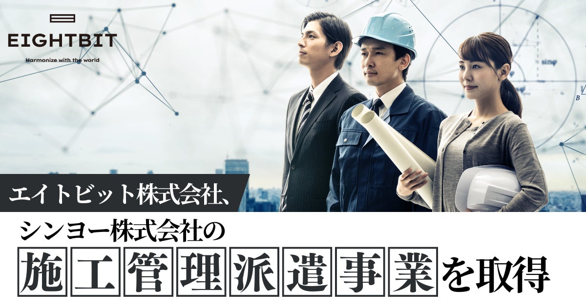 エイトビット株式会社(本社:東京都豊島区、グループ代表:茂手木 雅樹、以下「エイトビット」)は、シンヨー株式会社(本社:神奈川県川崎市川崎区、代表取締役社長:岩井 邦夫、以下「シンヨー」)が長年にわたり展開してきた施工管理派遣事業を、事業譲渡により取得することについて合意いたしました。