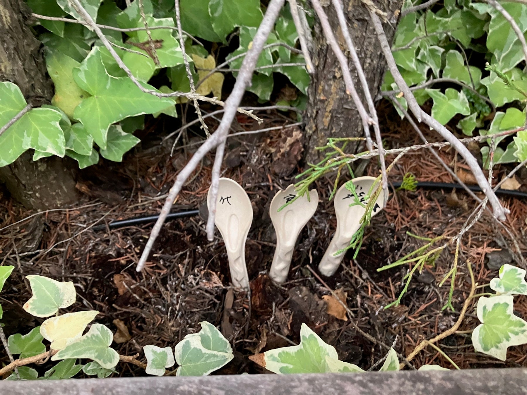 今回は実際に、代官山T-SITE内に使用後のバガスカトラリーを埋めました。