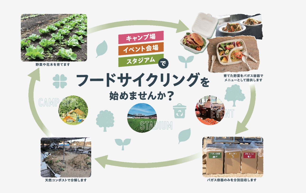 折兼では、使用後のバガス容器を回収・堆肥化し、その堆肥で育てた野菜や植物をイベントで再び活用する取り組みを行っており、堆肥化できるアパレル製品の開発・販売を行う株式会社ピエクレックスがP-FACTSを通じて「衣」の循環を推進するのに対し、折兼は「食」の循環を担い、ともに循環型社会の実現を目指しています。