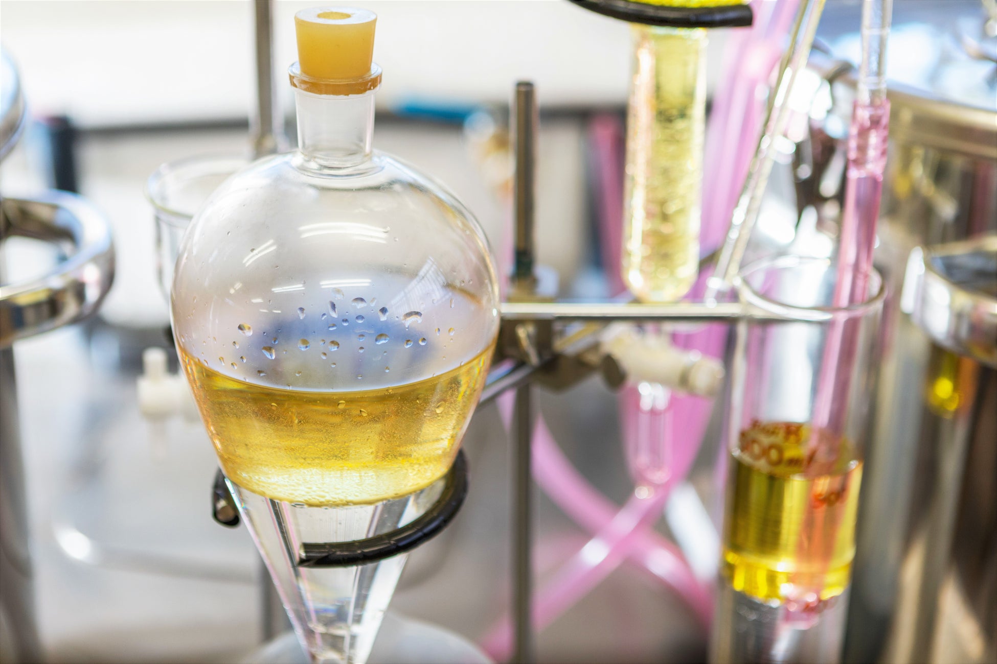 蒸留後の残渣を染料として再活用するなど、サステナブルな循環型ものづくりを実践している。