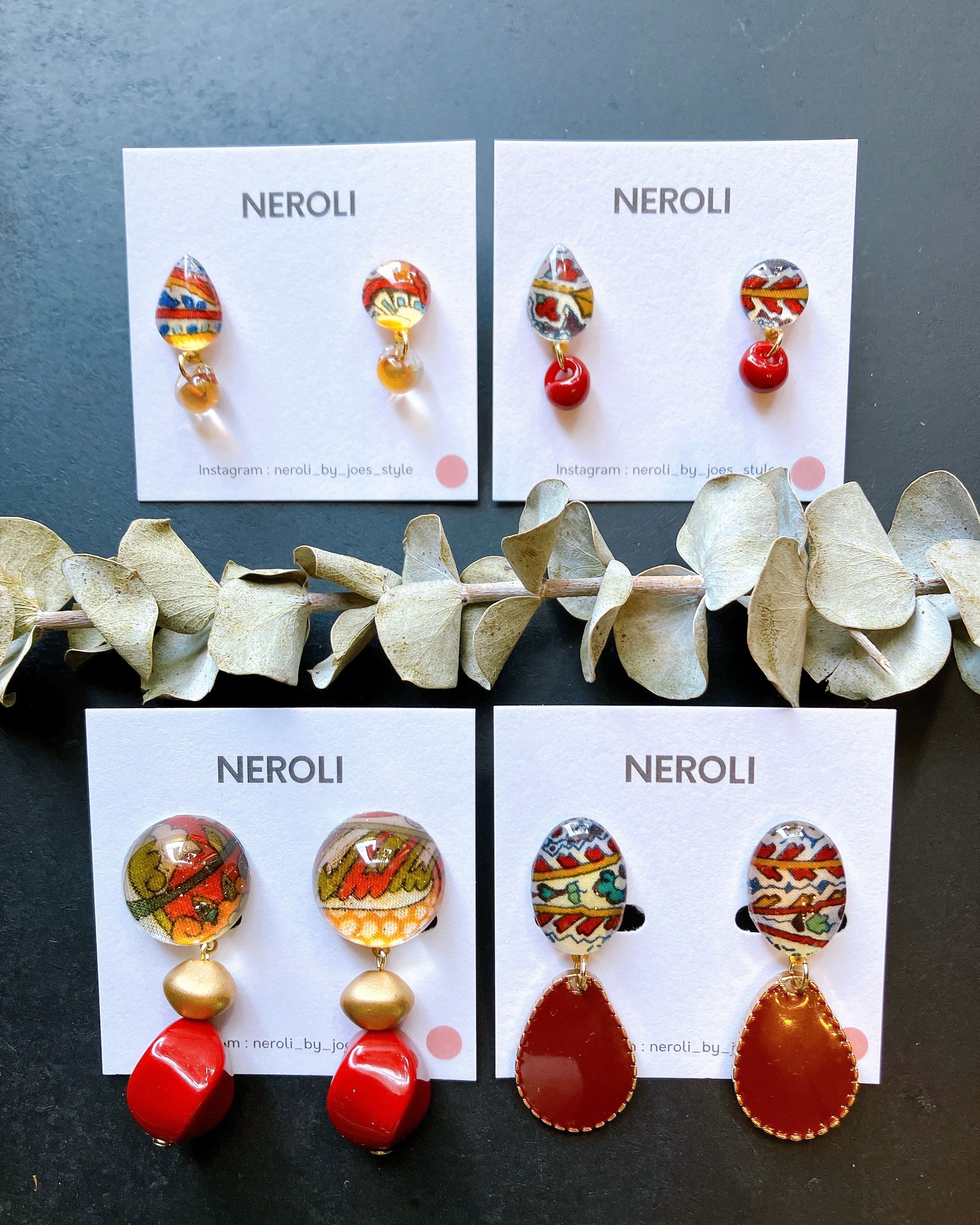 一つひとつ手染めした革花パーツで制作するオリジナルアクセサリーを販売します。