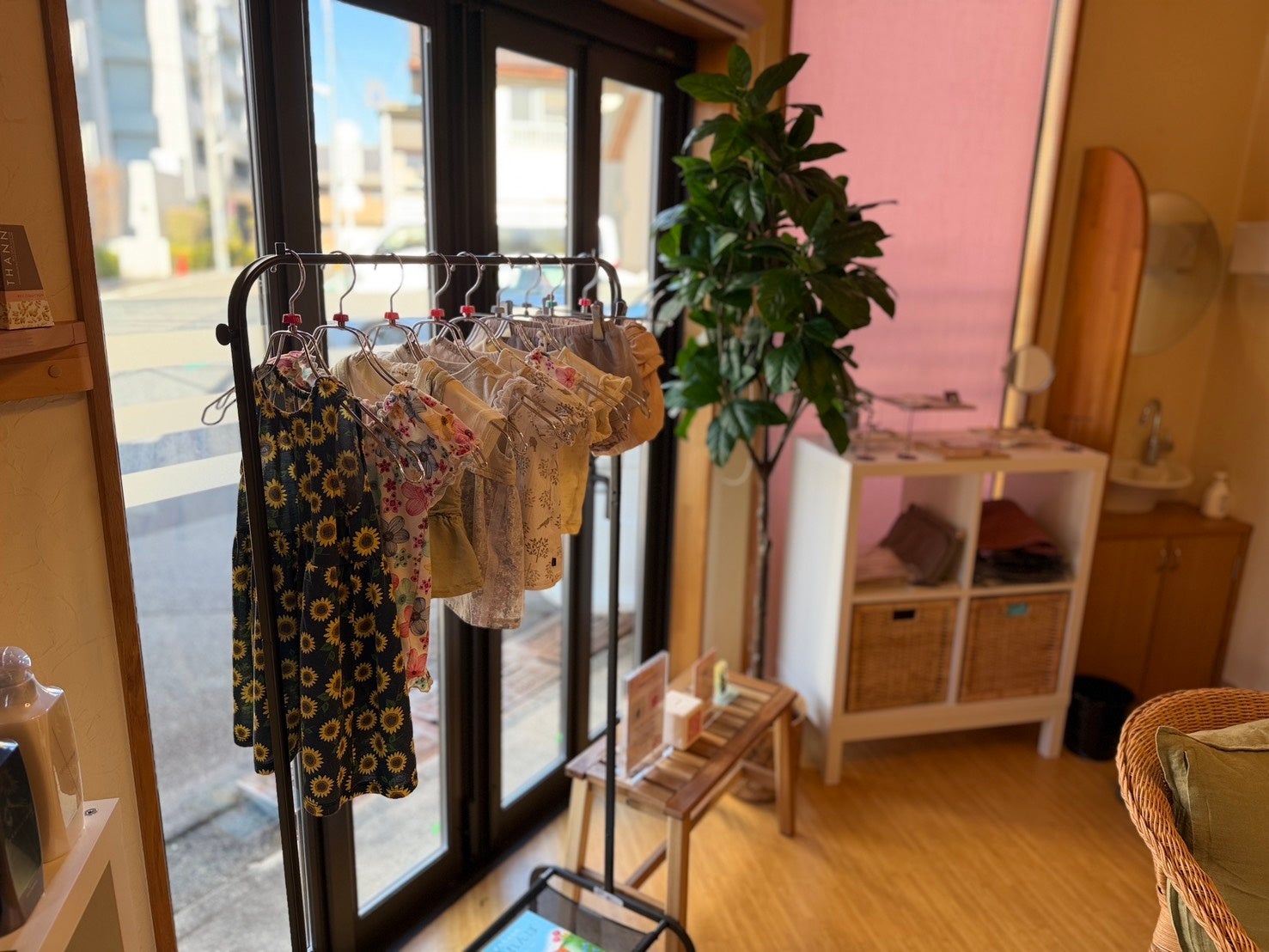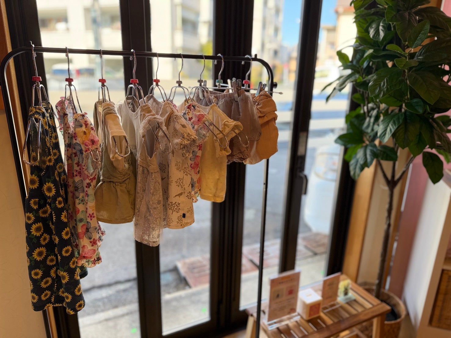 本プロジェクトの最大の特徴は、並んでいるアイテムの品質管理です。 「人様にお渡しするものだから、安心して使ってほしい」というこだわりから、回収した古着やおもちゃはすべてオーナー自身が洗濯、除菌、丁寧なアイロンがけを行っています。 リサイクルショップのような無機質な陳列ではなく、カフェの雰囲気に合わせた「選ぶのが楽しくなる」ディスプレイを心がけています。