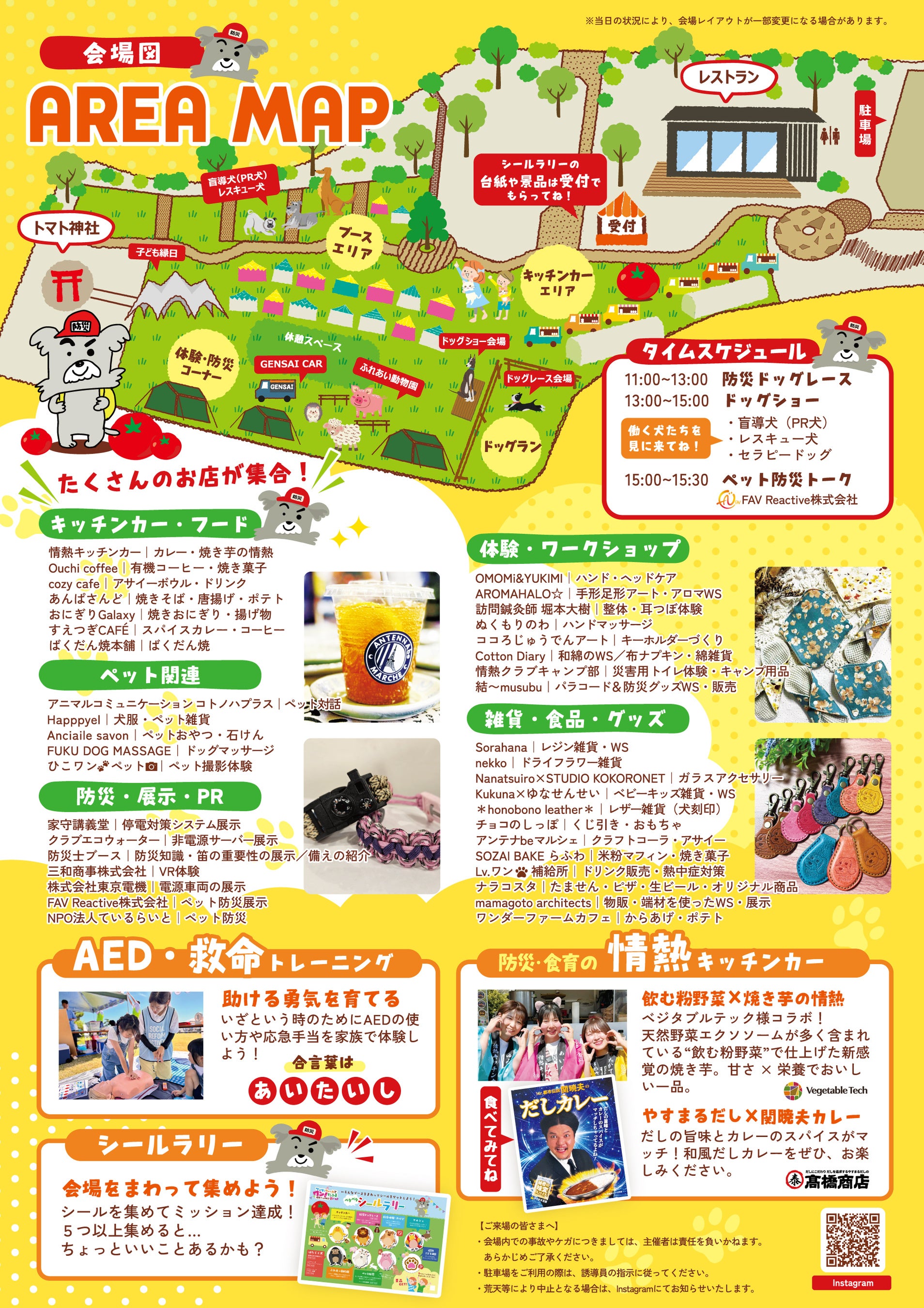 入場は無料で、愛犬との避難シミュレーションとなる「防災ドッグレース」やAED・救命体験・地域マルシェを実施。