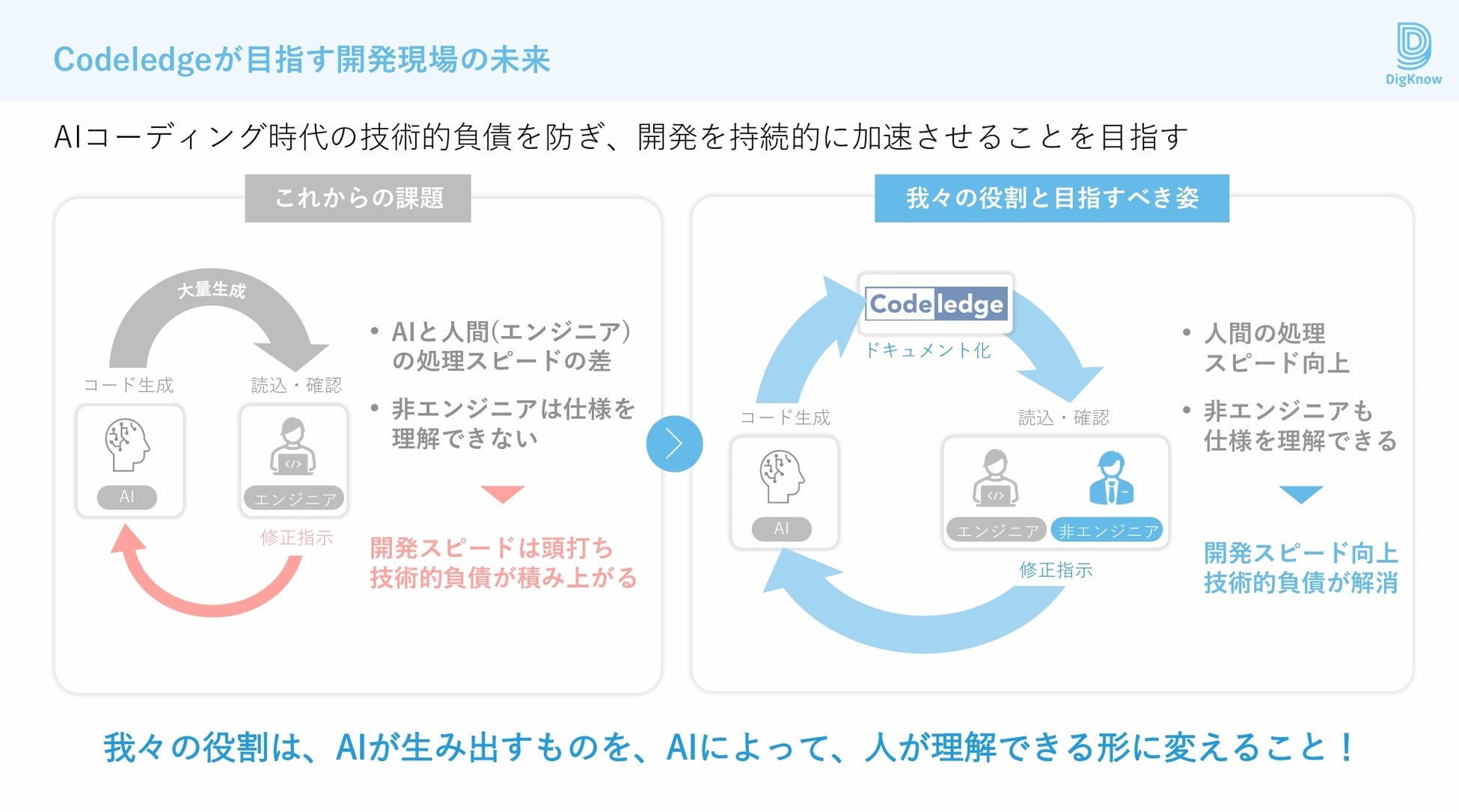 【DigKnow】AIによる技術ドキュメント自動生成サービス「Codeledge」のSaaSモデル(β版)の提供開始。「新規事業大会議 2026」のトークセッションに代表 伊藤が登壇いたします。