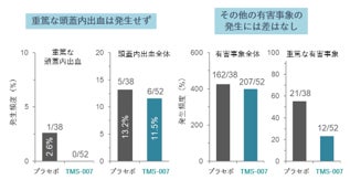 TMS-007群とプラセボ群と比較した解析では、TMS-007の投与による有害事象(好ましくない、または意図しない兆候・症状)の増加は認められませんでした。