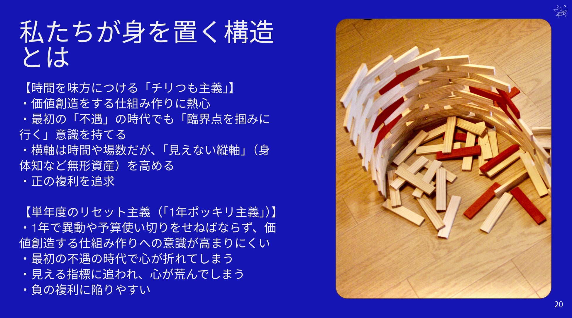 「非営利事業は、社会的価値が複利で増える仕組みをどう設計するかが重要だと感じた」