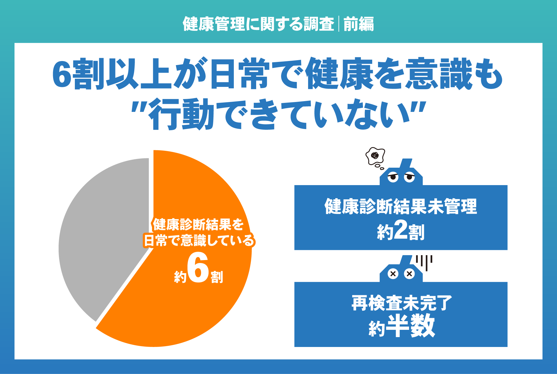 【健康管理に関する調査|前編】6割以上が日常で健康を意識も“行動できていない” 2割が診断結果未管理、再検査は約半数が未完了