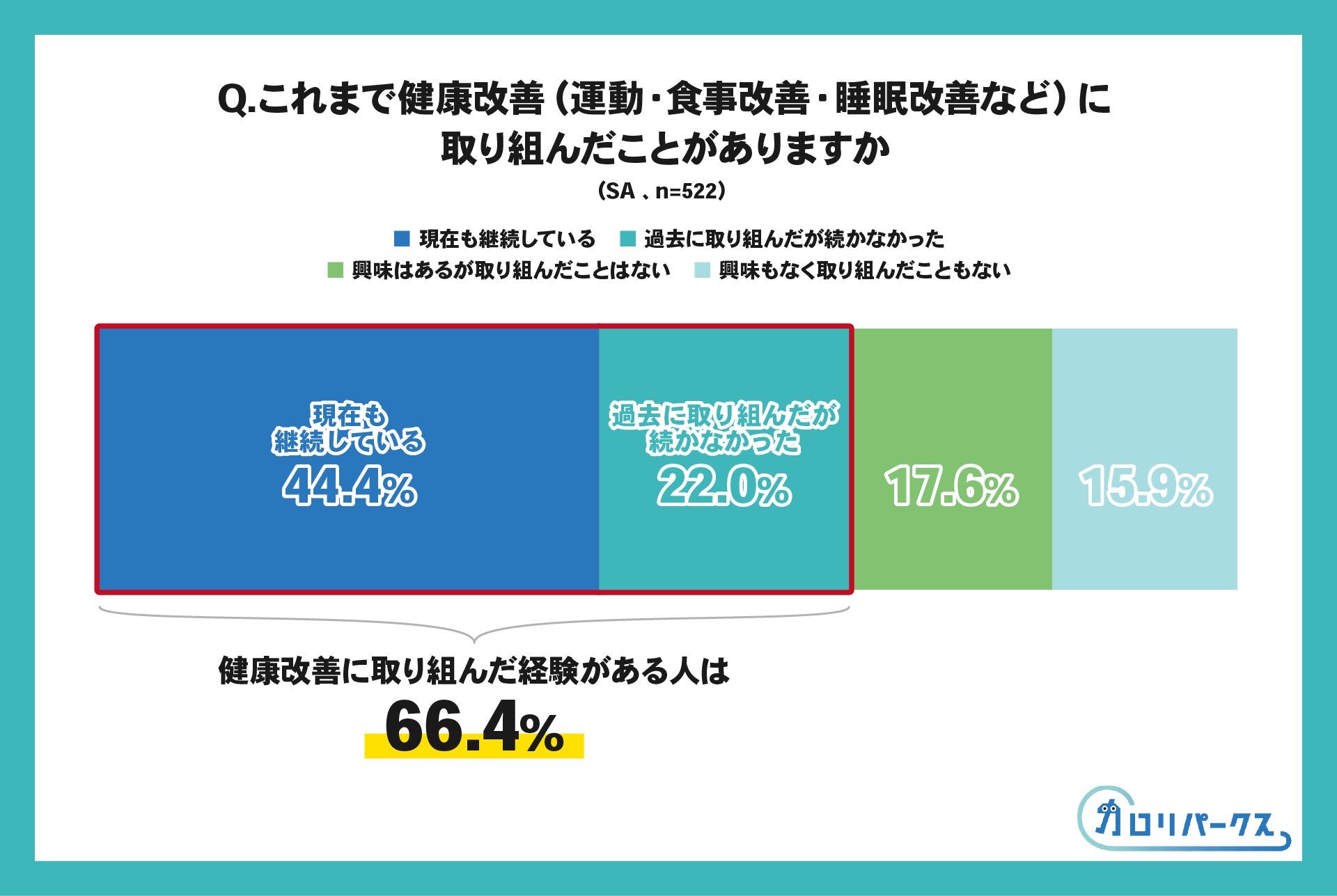 健康改善は66.4%が経験、一方で2割超が継続できず