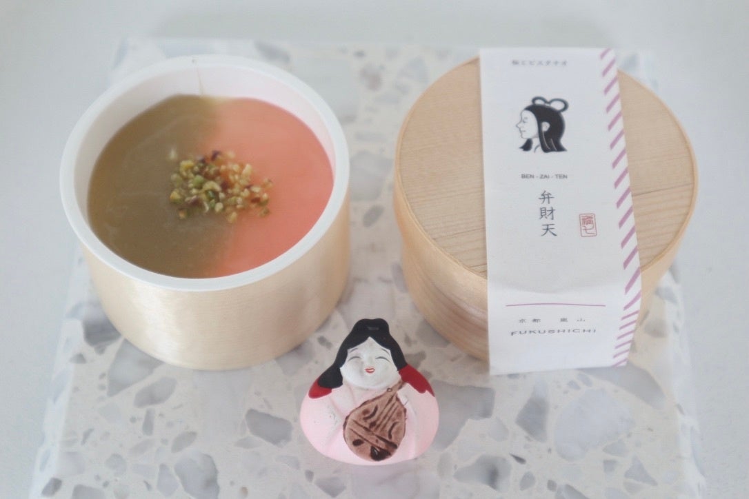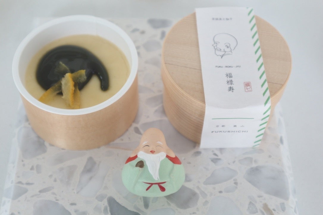 当店は、京都嵐山で2023年に開店し、今年で開店2年目になる嵐山プリン専門店福七(fukushichi)です。当店は、京都嵐山で2017年に創業し、今年で創業8年目になる京綿菓子専門店zarame(ザラメ)の系列店です。当店のプリンは、白餡をベースにし和洋折衷の和菓子のような新食感プリンです。ひとつ一つのプリンに七福神の名前が付いており、経木に入った見た目にも素敵な7つの神様が入ったプリンセット「宝船」をお正月限定企画として新発売します(1月1日~1月15日)。7種類のプリンは、それぞれ、恵比寿天(プレーン)、福禄寿(京抹茶と柚子)、大黒天(京丹波産黒豆きな粉とイチヂク)、毘沙門天(ほうじ茶とオレンジ)、寿老人(3種類のチーズ)、弁財天(桜とピスタチオ)、布袋(イチゴと鴬甘納豆)です。お正月にご家族やご友人とシェアしたり、大切な方への贈り物に、自分へのご褒美として、新商品「宝船」をどうぞご賞味下さい。販売は、店頭、お電話、ECサイト。