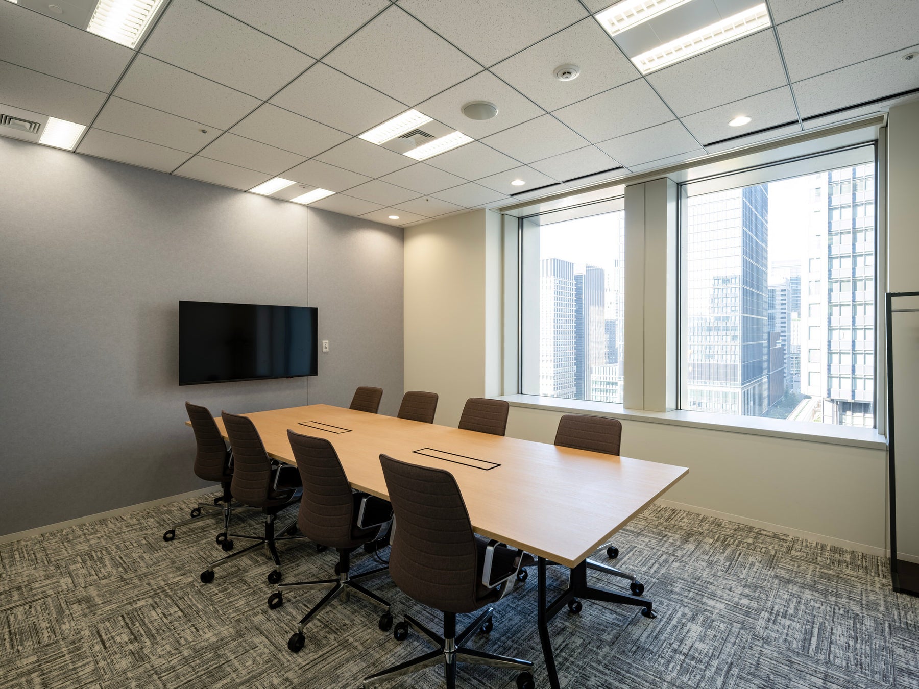 重要な商談やプロジェクト推進の場として、機密性と機能性を兼ね備えたカンファレンスルームを設けました。落ち着いた空間で戦略的な議論とスピーディな意思決定を支え、お客様との信頼関係をさらに深め、高付加価値なサービスの提供につなげていきます。