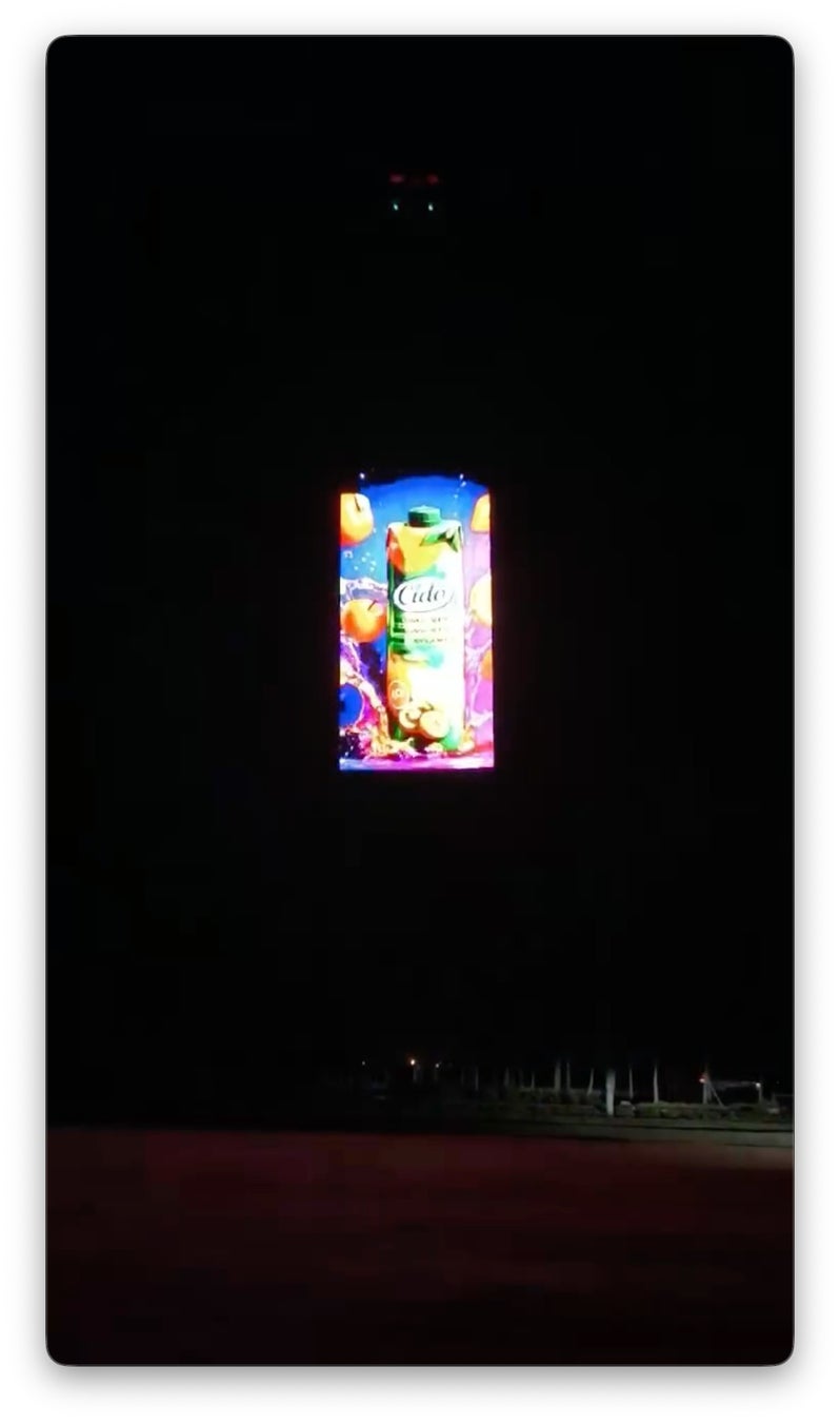 本サービスは、ドローンによる立体的な演出と、空中に浮かぶLEDディスプレイを組み合わせることで、高精細かつダイナミックな表現を実現する次世代エンターテインメントである。映像・文字・ロゴなどを鮮明に表示でき、広告、ライブ演出、企業イベントなど幅広い用途に対応する。