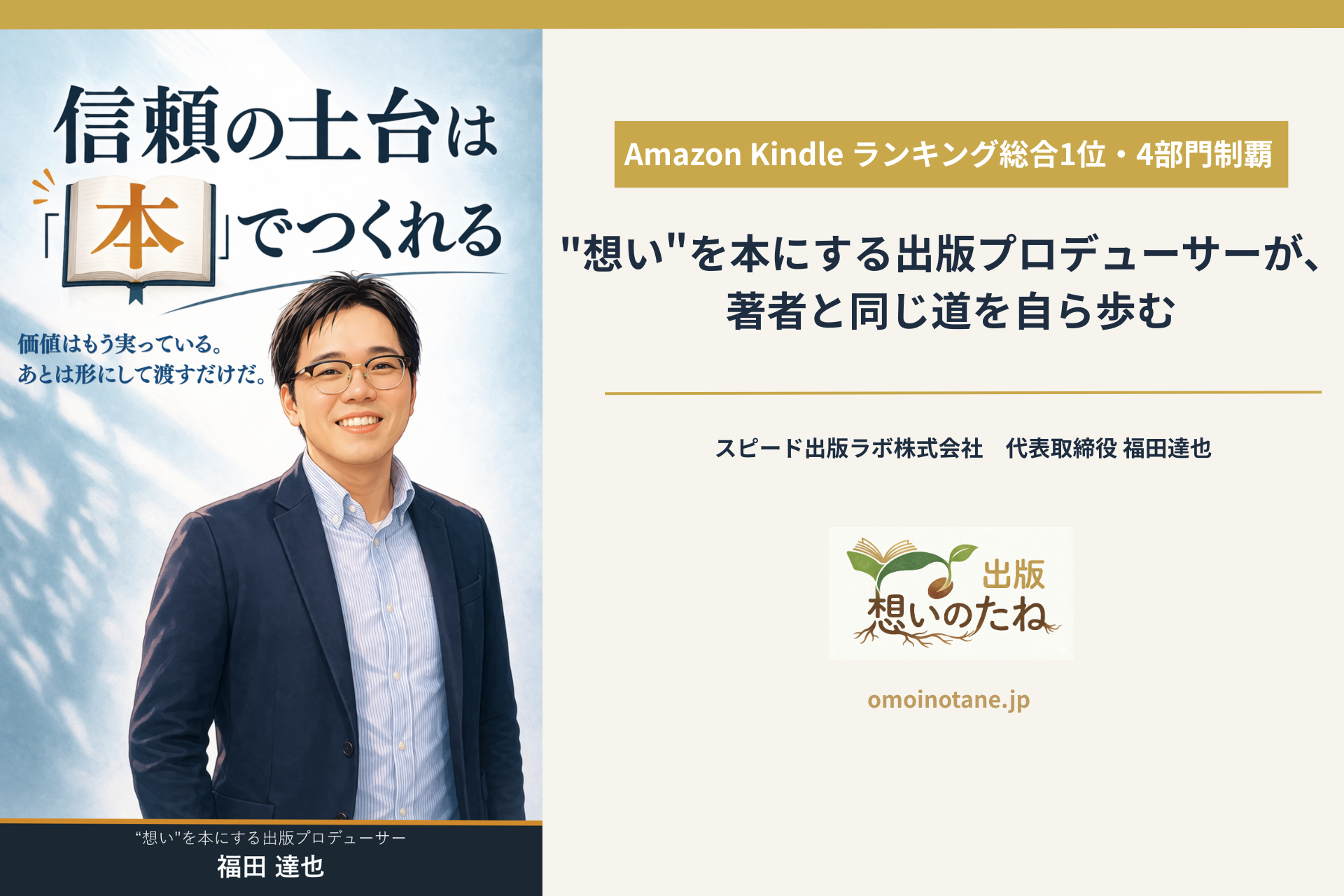 "想い"を本にする出版プロデューサーが、著者と同じ道を自ら歩み、初著書でAmazon Kindleランキング総合1位・4部門同時制覇