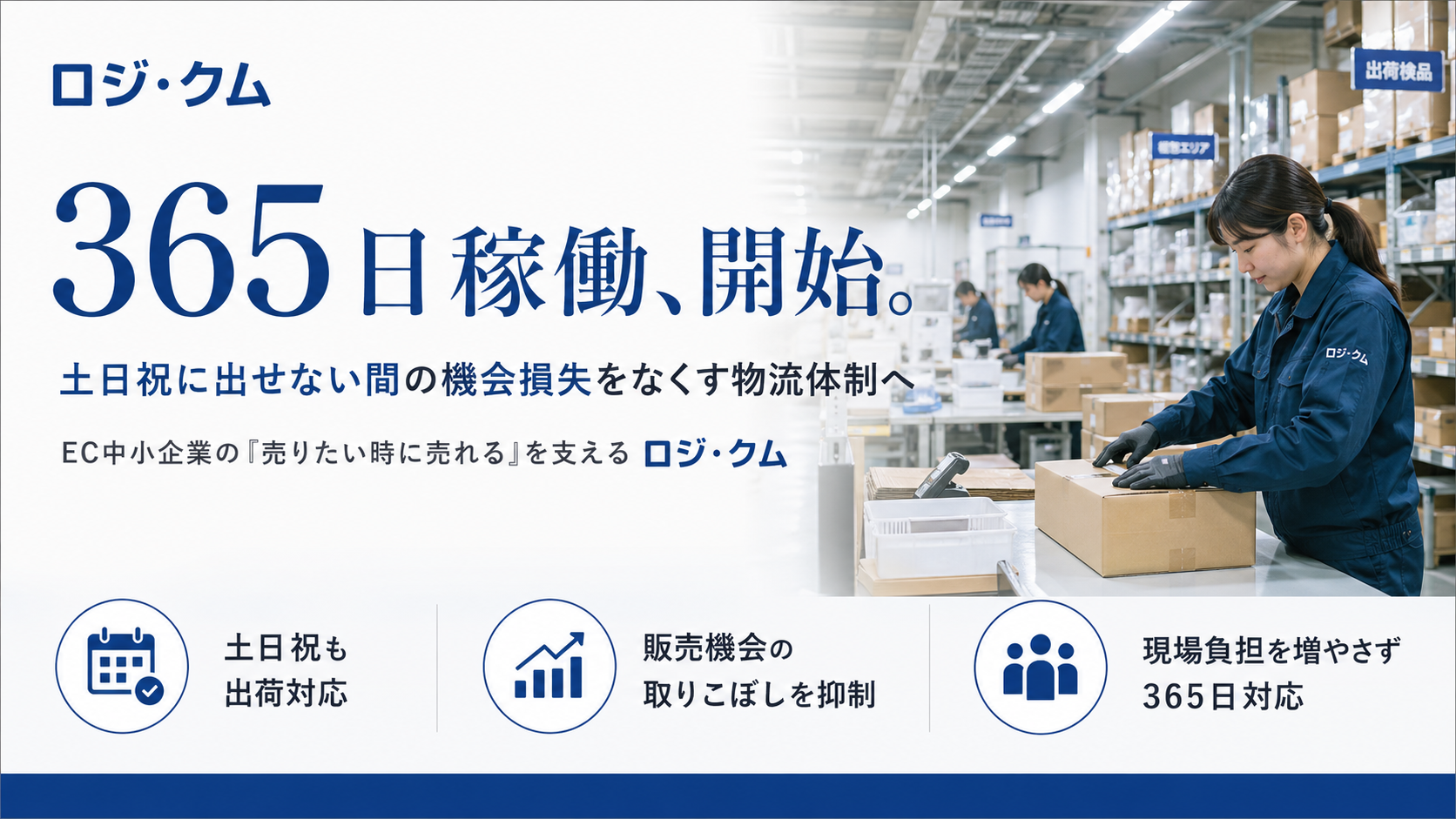 ロジ・クム、365日稼働を開始。土日祝に出せない間の機会損失に悩むEC中小企業を支援