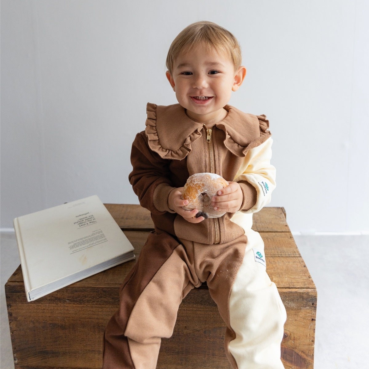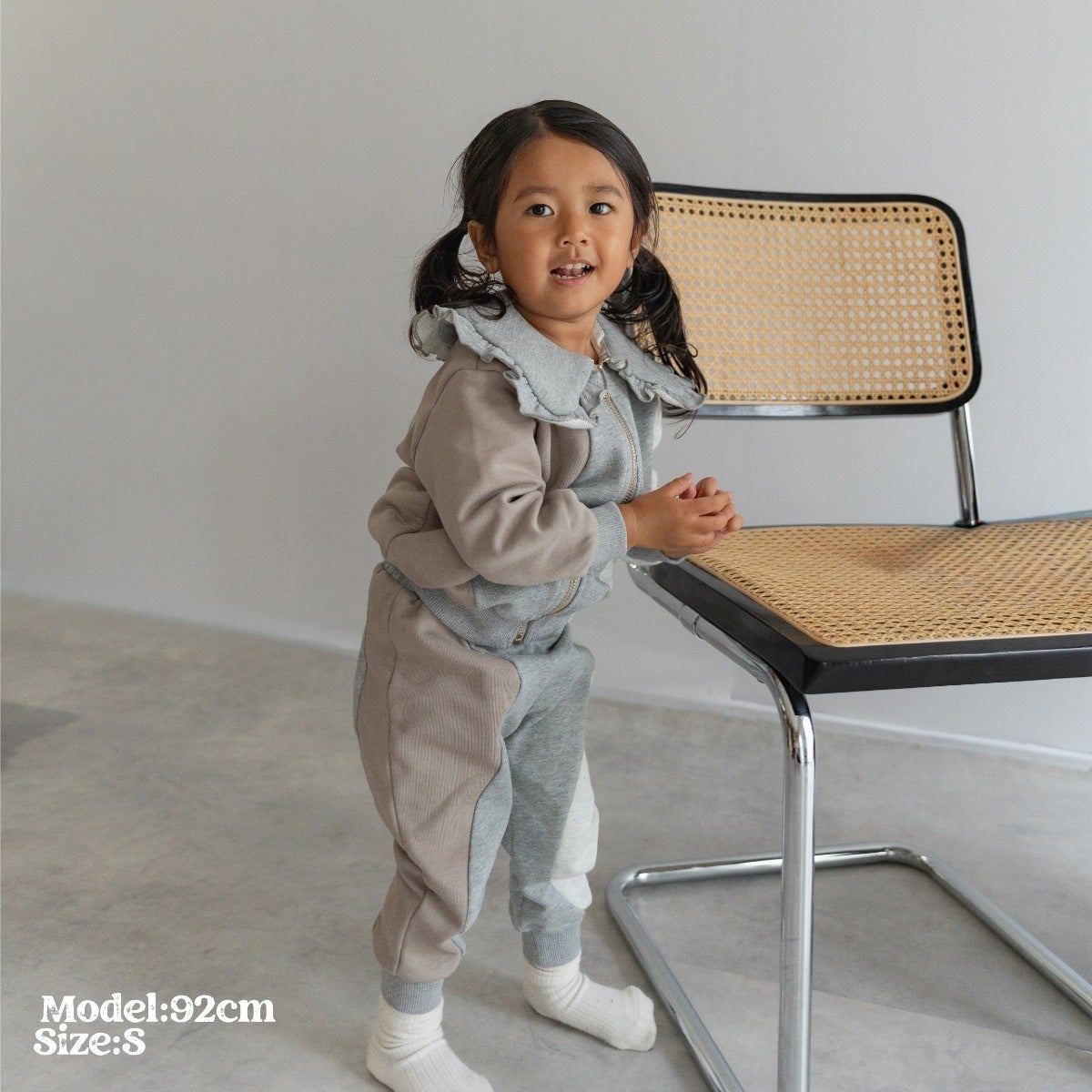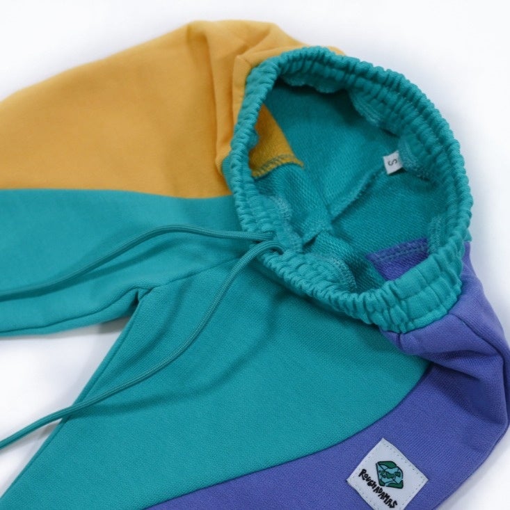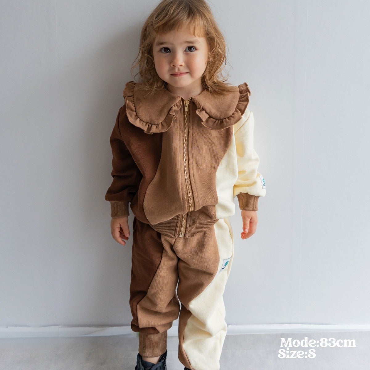 という想いを体現した贅沢に3色のスウェット生地を使用したオリジナリティ溢れるウェーブデザインとフリルの襟が特徴的なスウェットセットアップのコレクション。