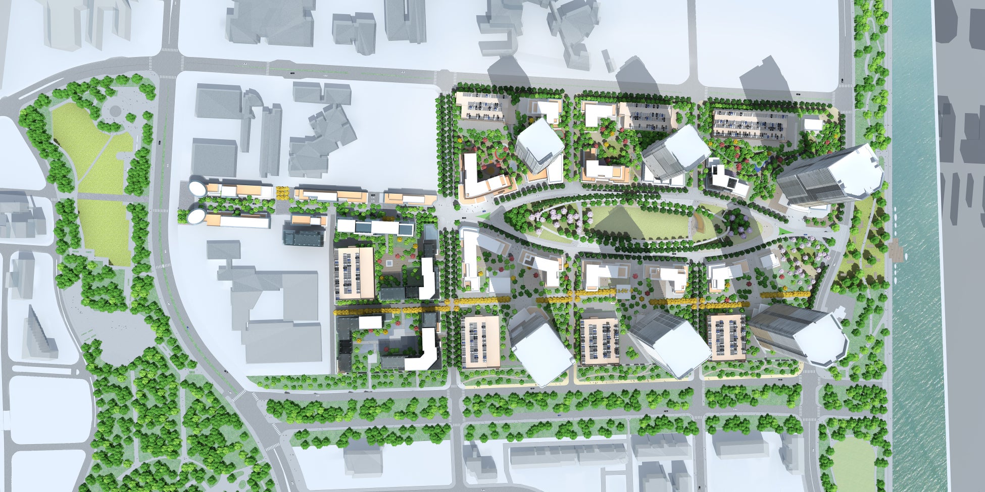 デザインガイドラインを軸に、個々のデザインが重なり合い、都市の多様性が生まれる