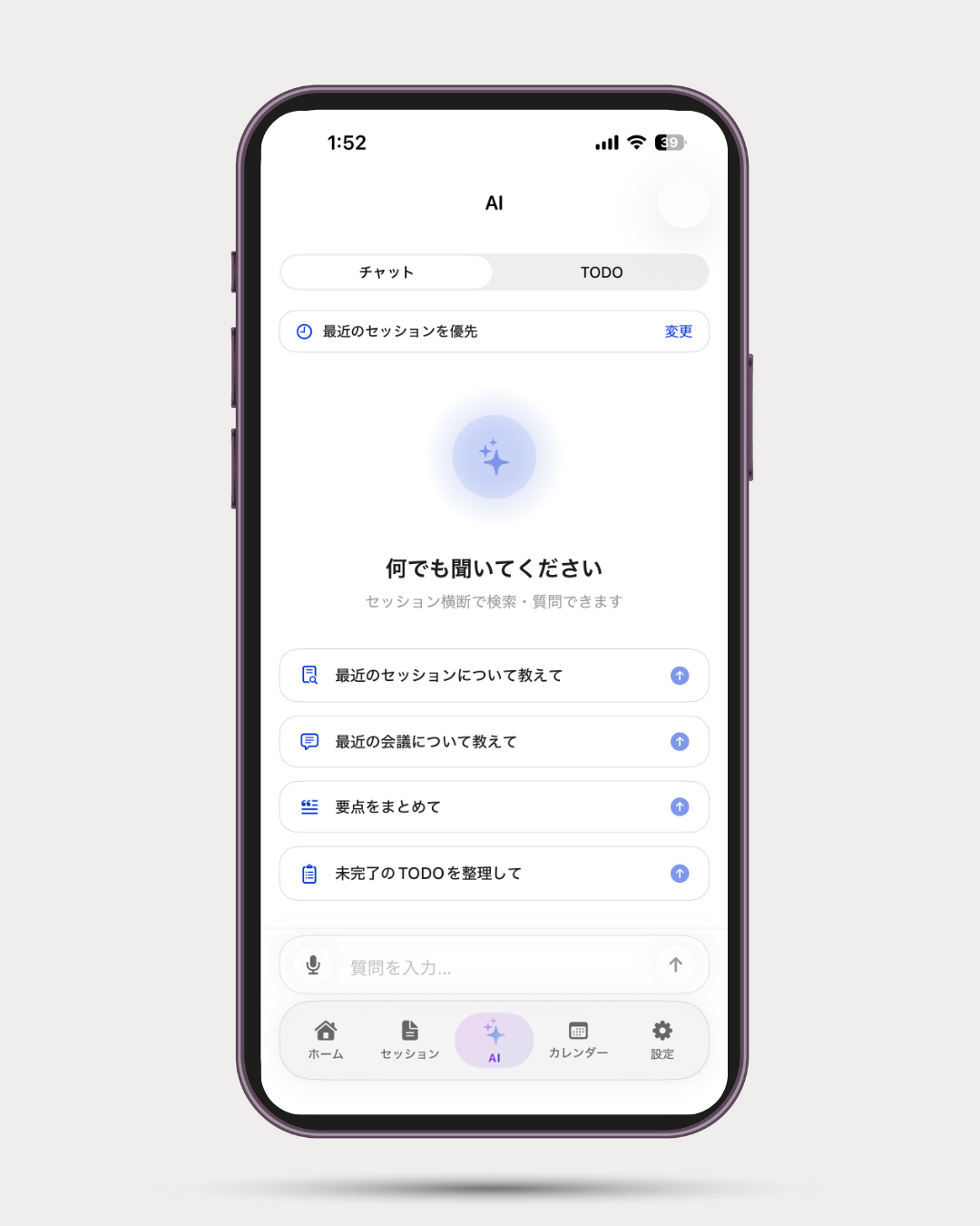 ・AIチャット機能を通じて蓄積された音声データをもとに内容の深掘りやToDoの整理