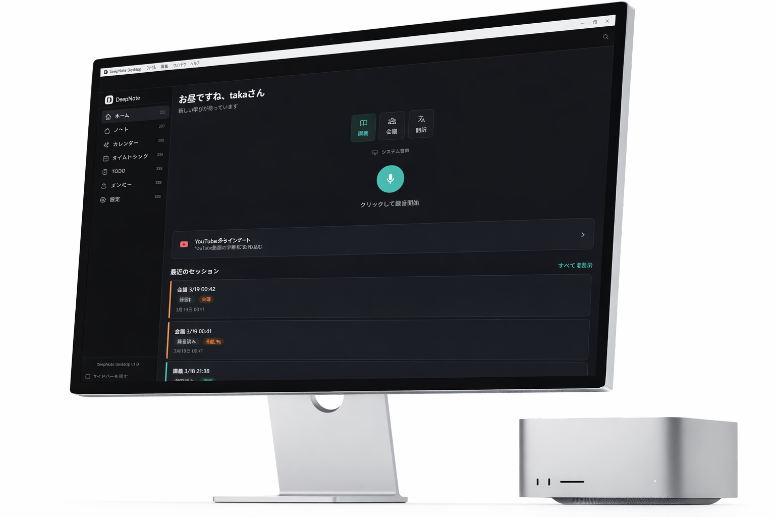 DeepNoteは、会議や講義を録音するだけで、文字起こし・要約・テスト生成・リアルタイム翻訳までを自動で行うAIアプリです。これまでモバイルアプリを中心に提供してきましたが、このたびPC環境に最適化されたWebアプリ版をリリースすることで、より幅広いシーンでの活用を可能にしました。