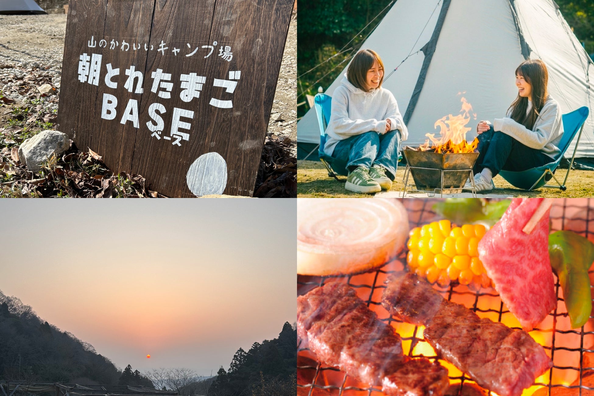 施設内には、山の眺望や小川を楽しめるキャンプ場「朝とれたまごBASE」や、気軽に楽しめるバーベキューエリアも併設。