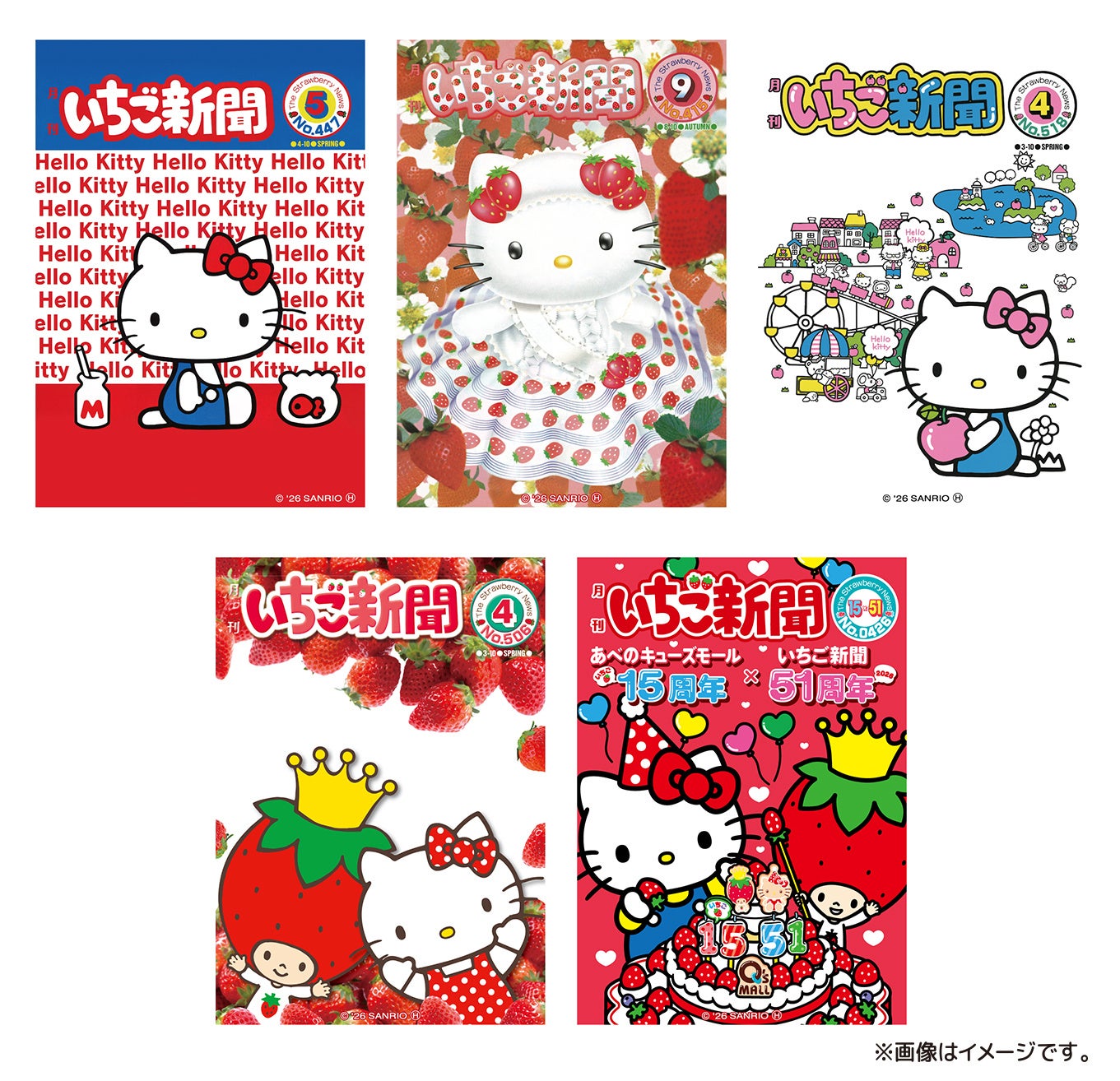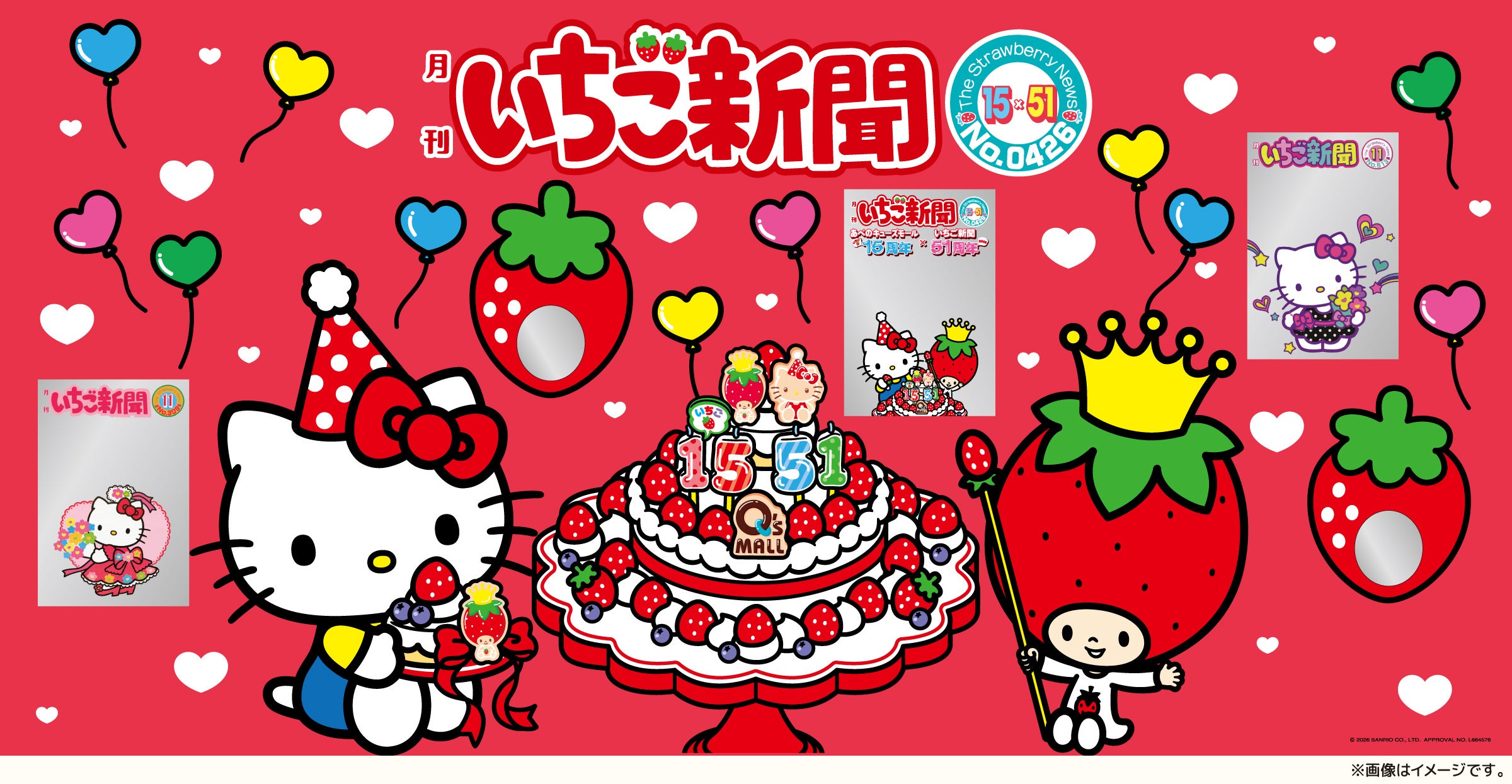 あべのキューズモール(大阪市阿倍野区)は、2026年4月26日(日)に開業15周年を迎えるにあたり、1月17日(土)から4月26日(日)まで多彩なイベントを実施します。周年を記念し、2月1日(日)から4月21日(火)には、株式会社サンリオ(以下、「サンリオ」)の人気キャラクター「ハローキティ」と、ファンに愛され続け、創刊51周年を迎える機関紙「月刊いちご新聞」とのスペシャルコラボイベントを開催します。
