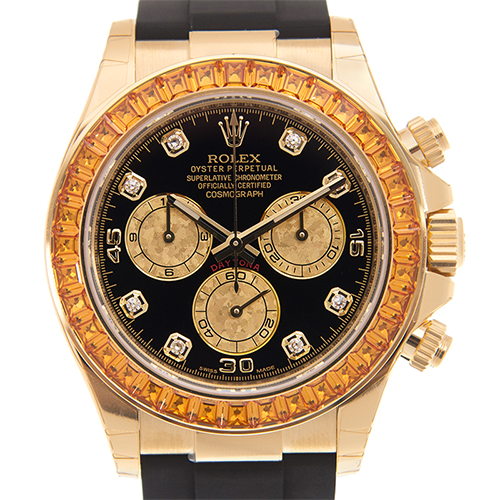 デイトナ(116588SACO)は、色味のある宝飾ベゼルが特徴です。
