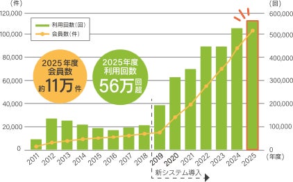 2025年度は累計会員登録者数は11万件を超え、利用回数は前年度比10%増の562,947回となりました。通勤や買い物などの日常の利用のほか、散策や観光にもご利用いただきました。また、観光向けプラン(1日パス)は国外の方の利用が年々増加していることを受け、多言語による利用案内や安全利用の周知啓発を行っています。