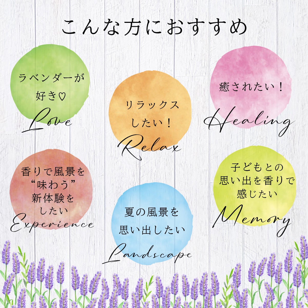 ラベンダーは「鎮静」「安眠」「ストレス緩和」で知られており、自宅やオフィスでのリフレッシュに最適です。