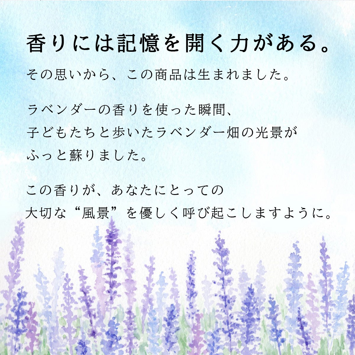 写真に写るようなラベンダー畑の風景を、香りで静かに思い出すことができます。