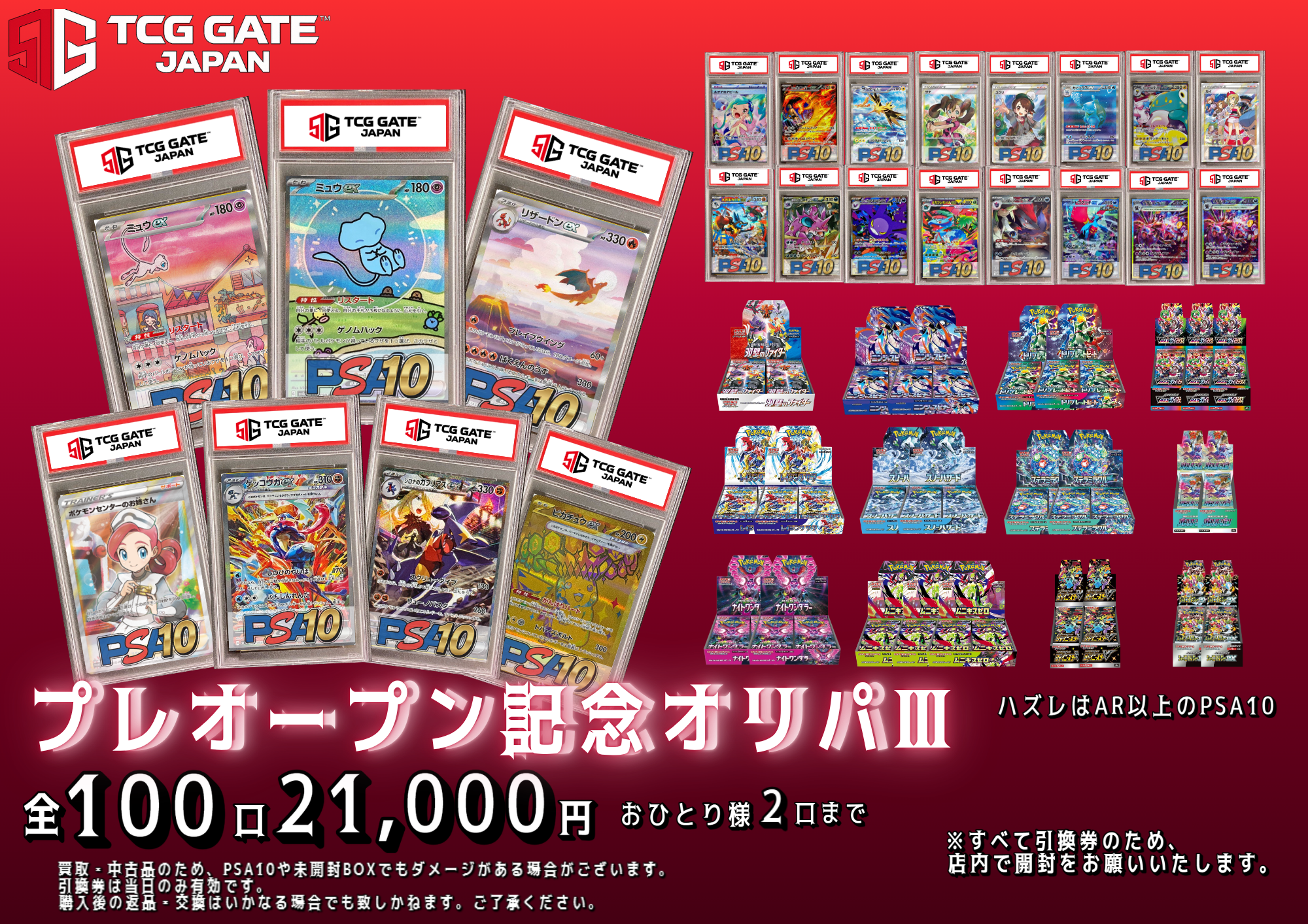 ② プレオープン記念オリパ(全50口・100,000円)PSA10鑑定カードを中心に構成したプレミアムオリパを販売いたします。