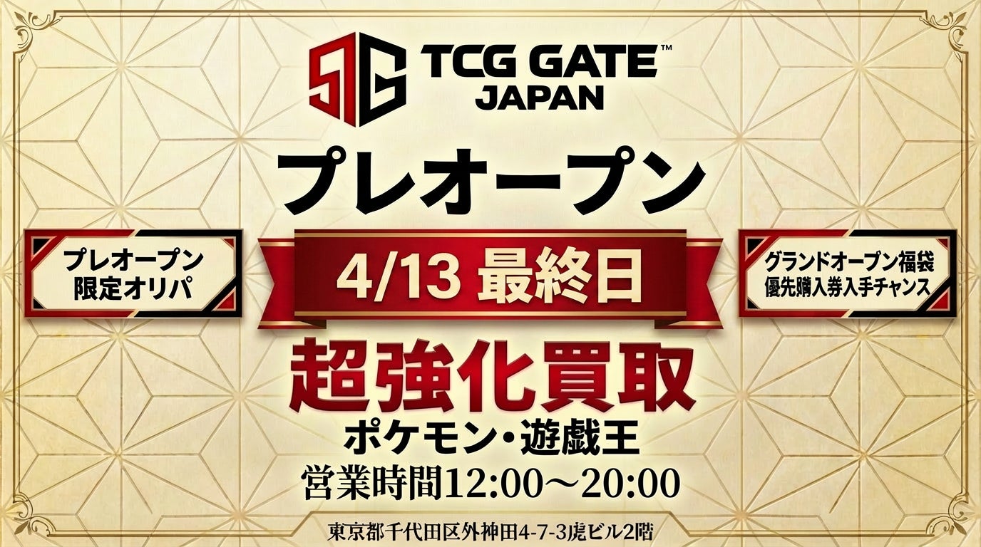 日本のトレーディングカード文化を世界へ発信する拠点として秋葉原にグランドオープンを予定する「TCG GATE」(運営:株式会社Anmore)は、2026年4月11日(土)・12日(日)の2日間にわたるプレオープンを経て、本日4月13日(月)をもって最終日を迎えます。