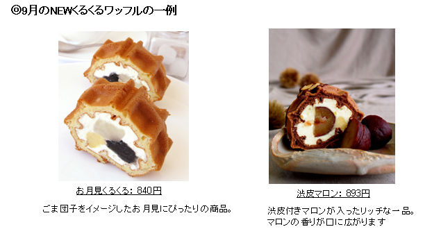 9月のNEWくるくるワッフルは、栗を使用したものや、お月見をイメージしたものなど季節感満載!