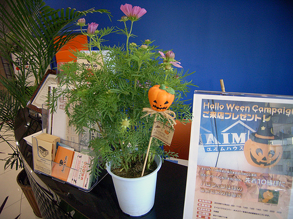 また当社は、今月ハロウィンキャンペーンを実施しております。本キャンペーンでは実施日に当社へご来店いただきアンケートにお答えいただいたお客様に、先着でハロウィン仕様のコスモスの鉢植えをプレゼントいたします。(キャンペーンについての詳細は下記をご覧ください)