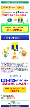 『お財布.com』 と『Tポイント』 がポイント交換サービスを開始!