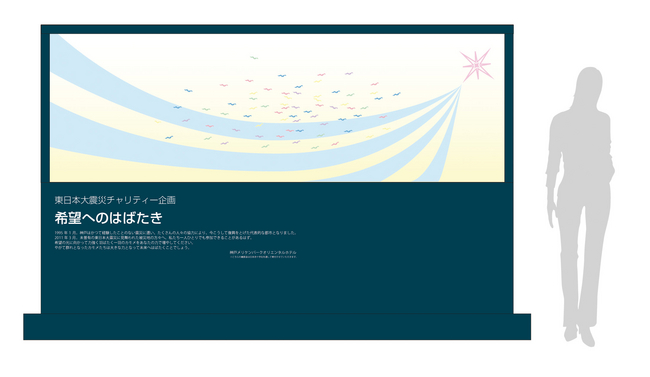 内容:義援金にご協力いただいた方々にカモメをモチーフにしたシールをお渡しし、復興のメッセージを込めてパネルへ貼っていただきます。