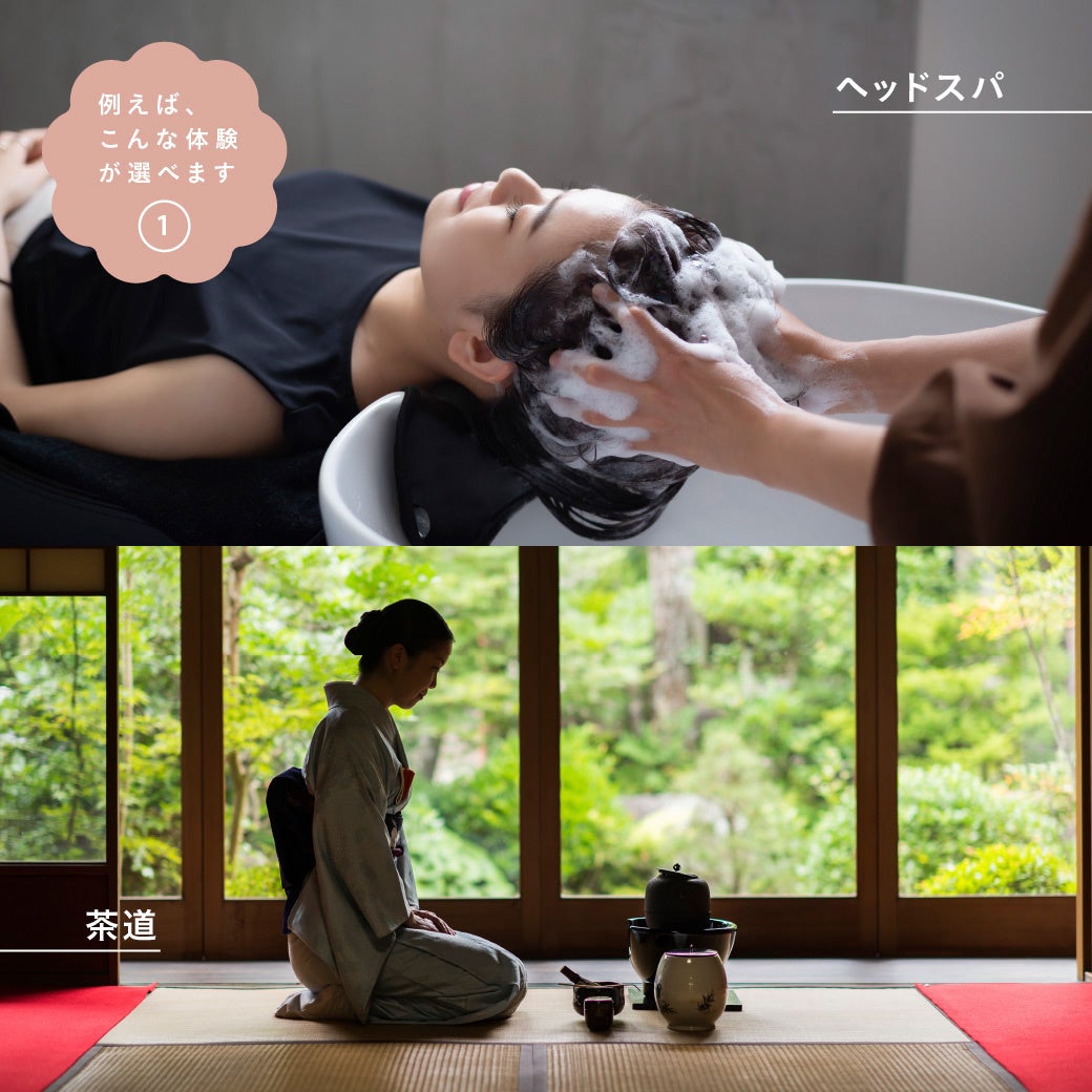 受け取った人が、専用サイトで利用したいコースを1つ選んで予約・申込し、体験できるギフトです。選択肢は500以上あり、女性が安心して行けるリラクゼーション施設や、ものづくりに没頭できるワークショップ、心と体をリフレッシュするヨガやジムのコースなどを収録。バスグッズやルームフレグランスなどの癒やしのアイテムも選べ、出かけられない人も自宅で充実の時間を過ごせます。