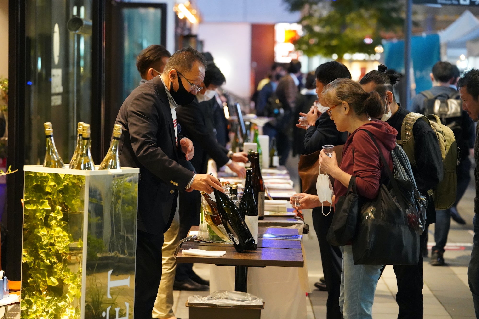 さらに1階のThe Room COFFEE & BARでも老舗企業とのコラボ企画が実施され、饅頭の老舗である塩瀬総本家、大手饅頭伊部屋、薄皮饅頭柏屋とコラボ饅頭が販売され、モダンな有田焼で人気の「有田ポーセリンラボ」とのコラボマグカップでドリンクが提供されました。また店頭では日本各地の酒造メーカー11蔵が集結し、試飲会を実施。